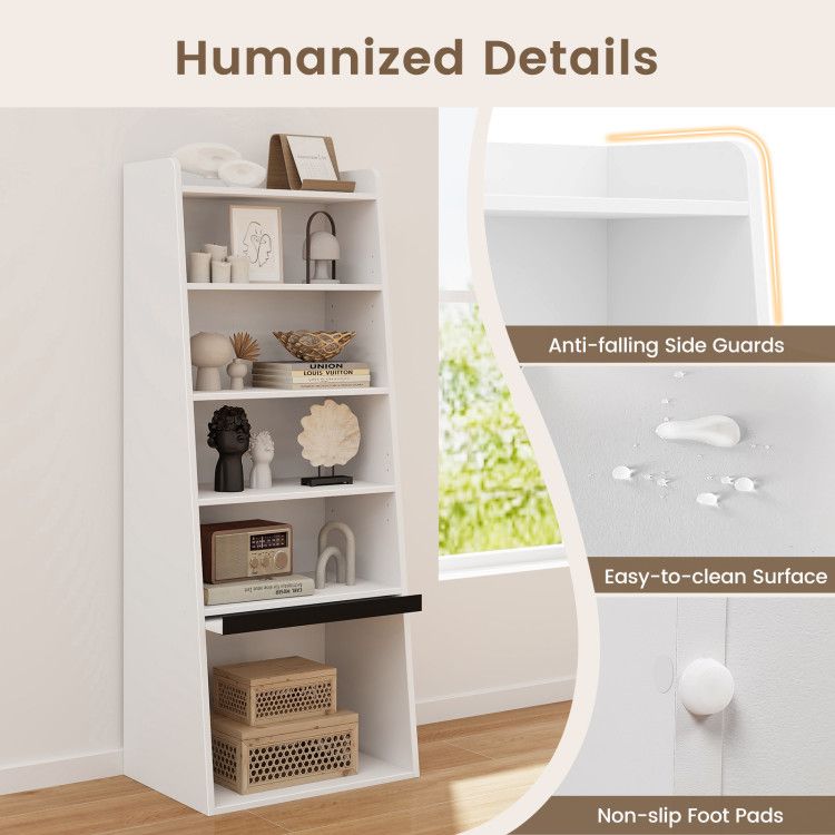 6-Tier Bookcase Freestanding Ladder Bookshelf with 2 Adjustable Shelves and Flip Up Door ‐ White
