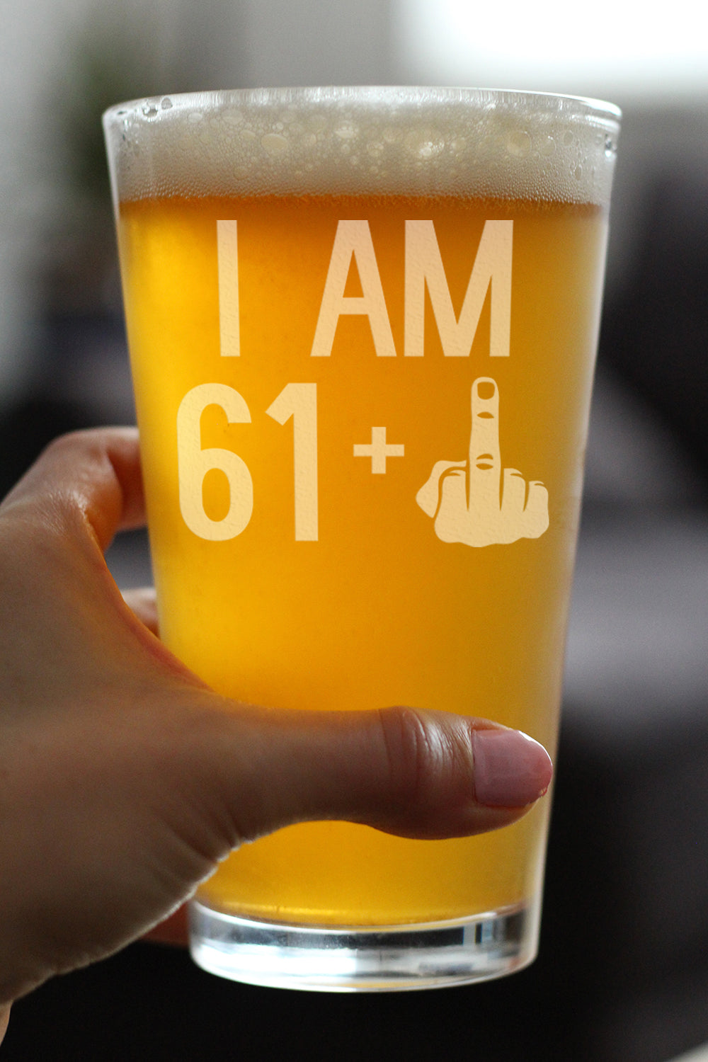 61 + 1 Middle Finger - 16 oz Pint Glass for Beer - Funny 62nd Birthday Gifts for Men Turning 62
