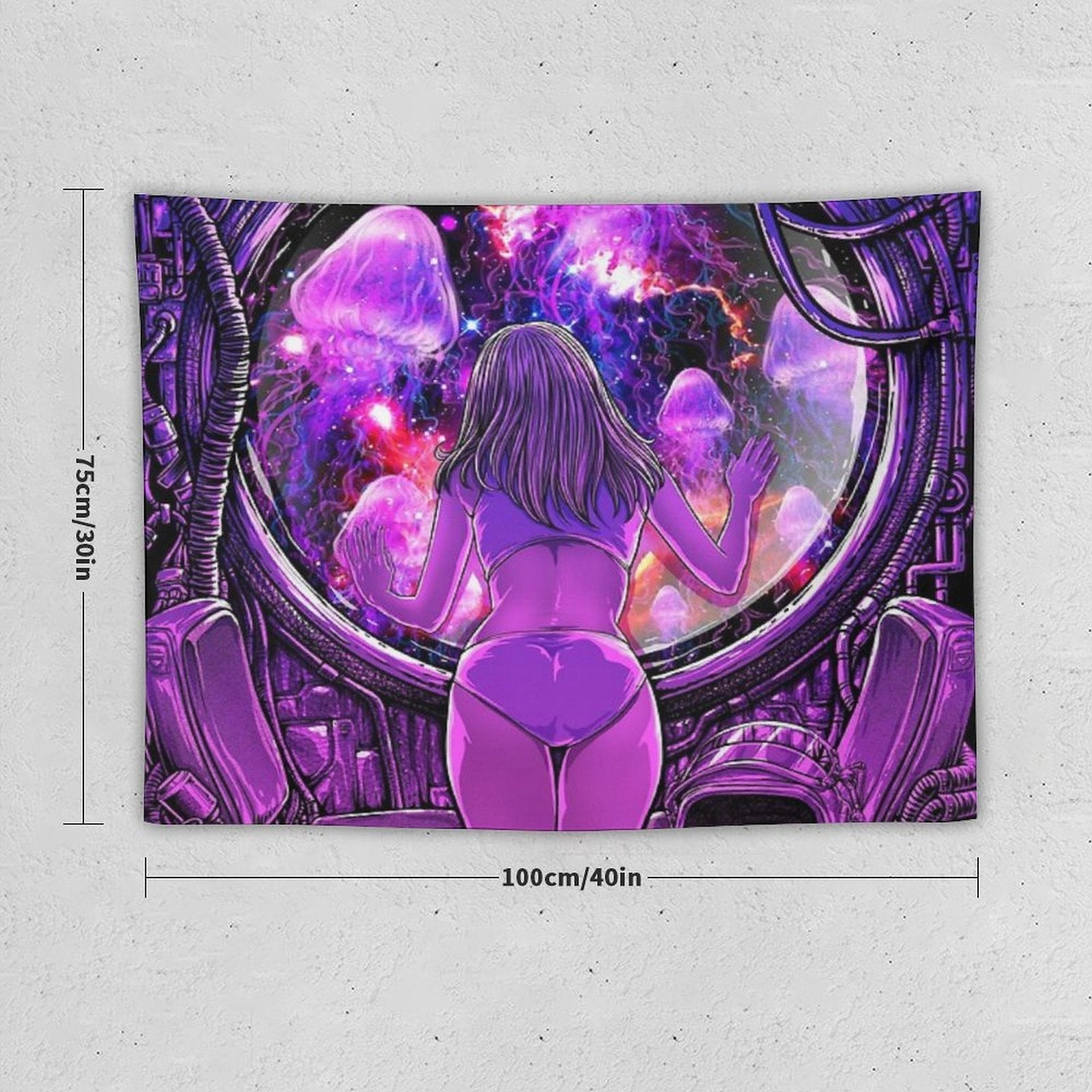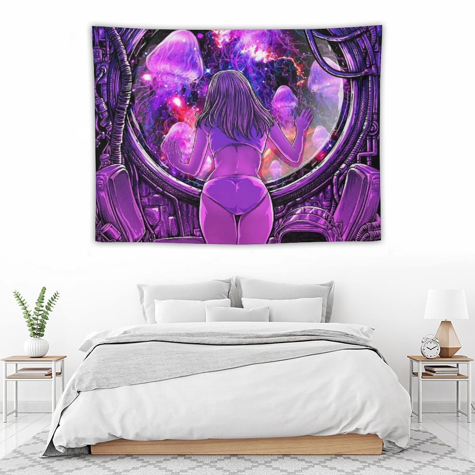 BionZax's A Girl in Purple Room Tapestry for Bedroom, College Dorm. A Girl in Purple Room Tapestry to decorate your bedroom, college dorm, living room, or kitchen wall, it is the best gift for funny, meme, aesthetic, trendy, simple, fashion, music, abstract, fantasy, modern tapestry for girls, men, boys, teen, women, kids.