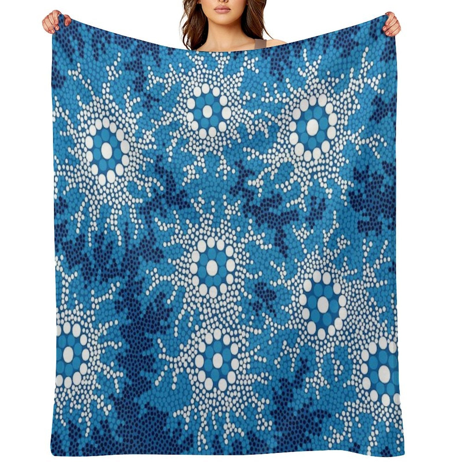 Aboriginal Art Authentic - Waterhole Dreaming Throw Blanket ‐ Aboriginal Art Authentic - Waterhole Dreaming / 60"×80"