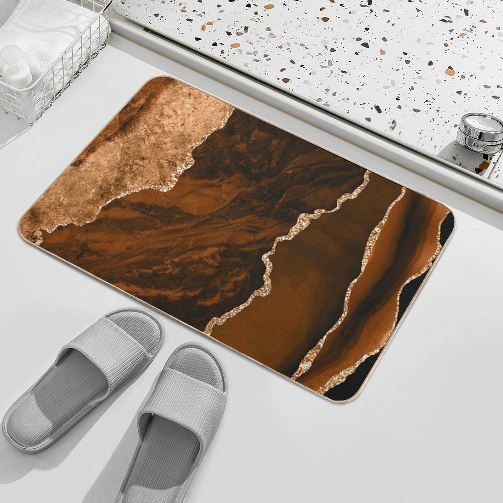 - Rapid-drying flannel soaks up water 3x faster than standard mats, preventing puddles in Abstract Chocolate Brown & Gold Modern Geode Agate Design bathrooms or poolside areas.