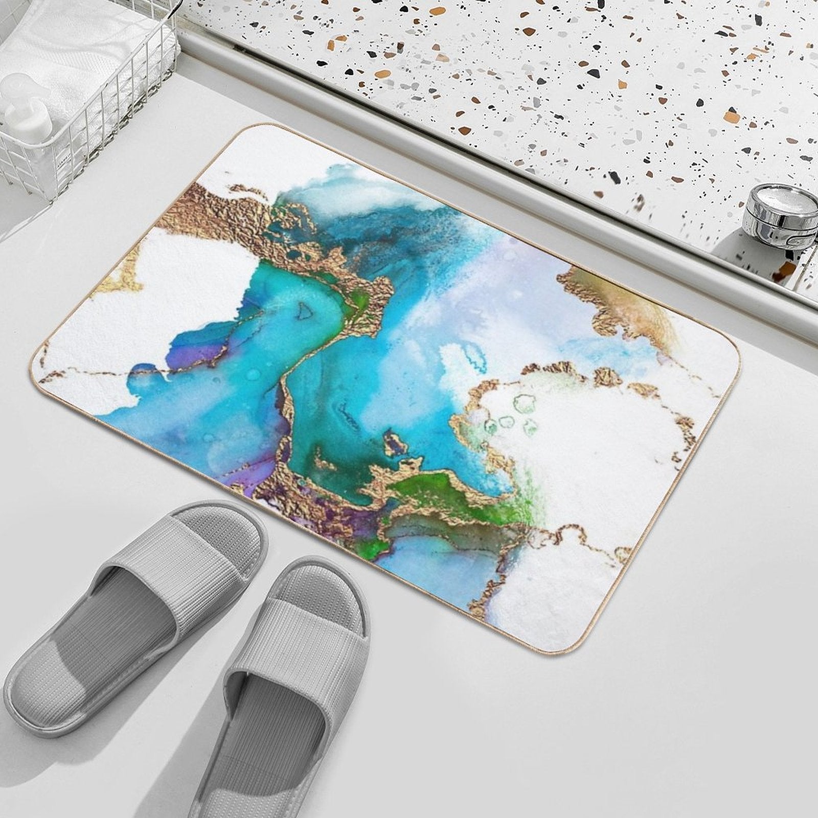 - Use as a vanity rug, guest suite accent, or mudroom defender – the Abstract Faux Marble Mermaid Gemstone With Gold Glitter Mat adapts to any space.