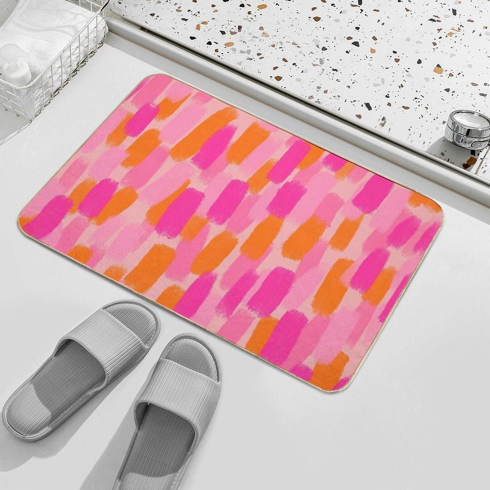 Abstract, Pink with Orange, Paint Brush Effect Bath Mat ‐ Abstract, Pink with Orange, Paint Brush Effec / 40x60cm