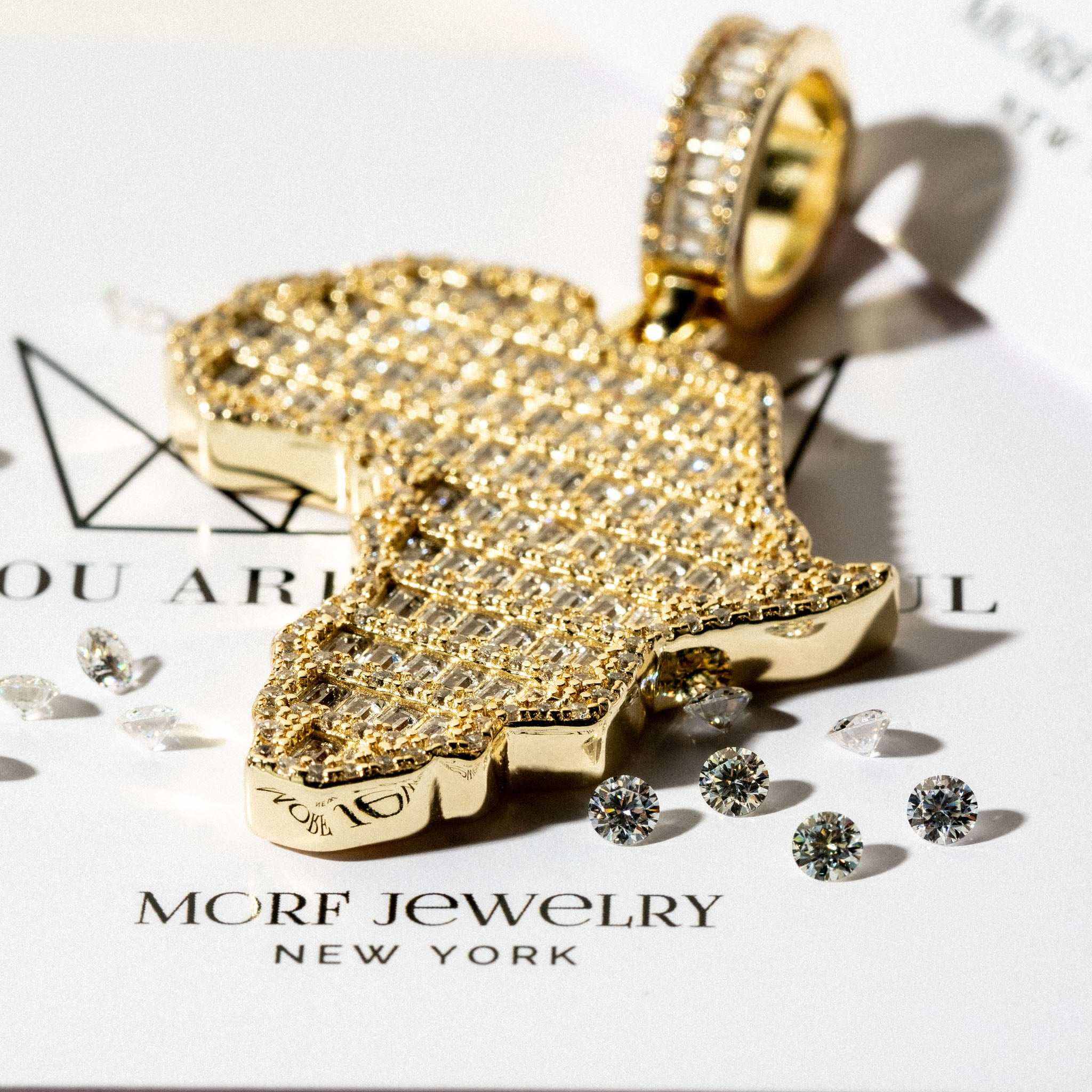 The detailed 3D micropave design of this pendant is truly captivating. Adorned with micro paved handset man-made diamonds(CZ) in both baguette and round cuts, it exudes brilliance and allure. These diamonds are so exquisitely crafted that it's nearly impossible to distinguish them from natural diamonds without the aid of a microscope. Prepare to be dazzled by their icy effect!