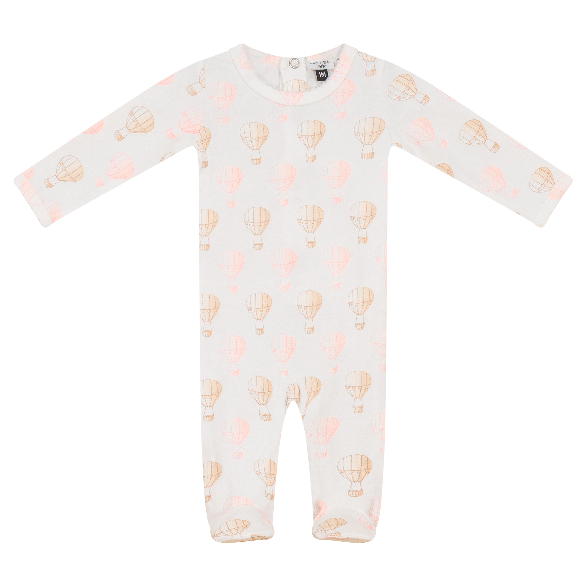 Air Balloon Printed Onesie ‐ White/Pink / 1 Month