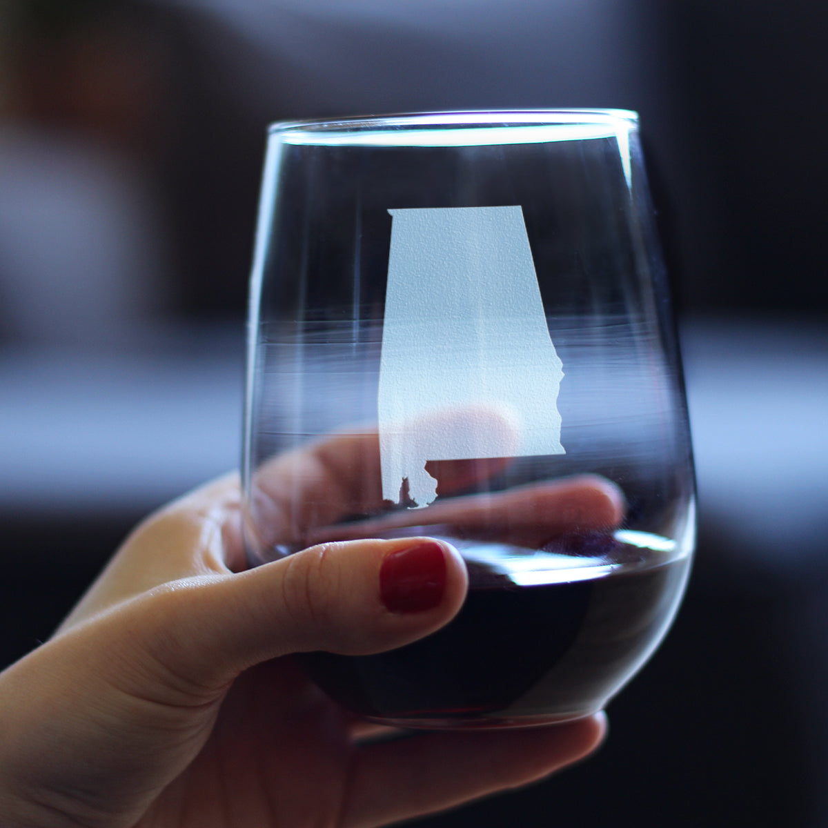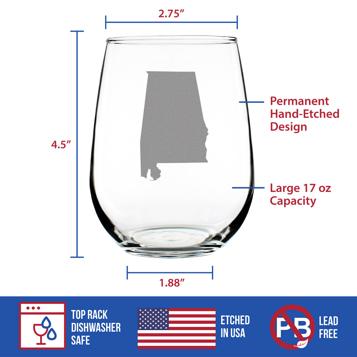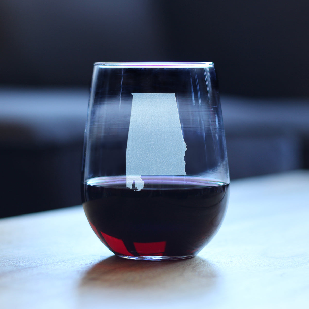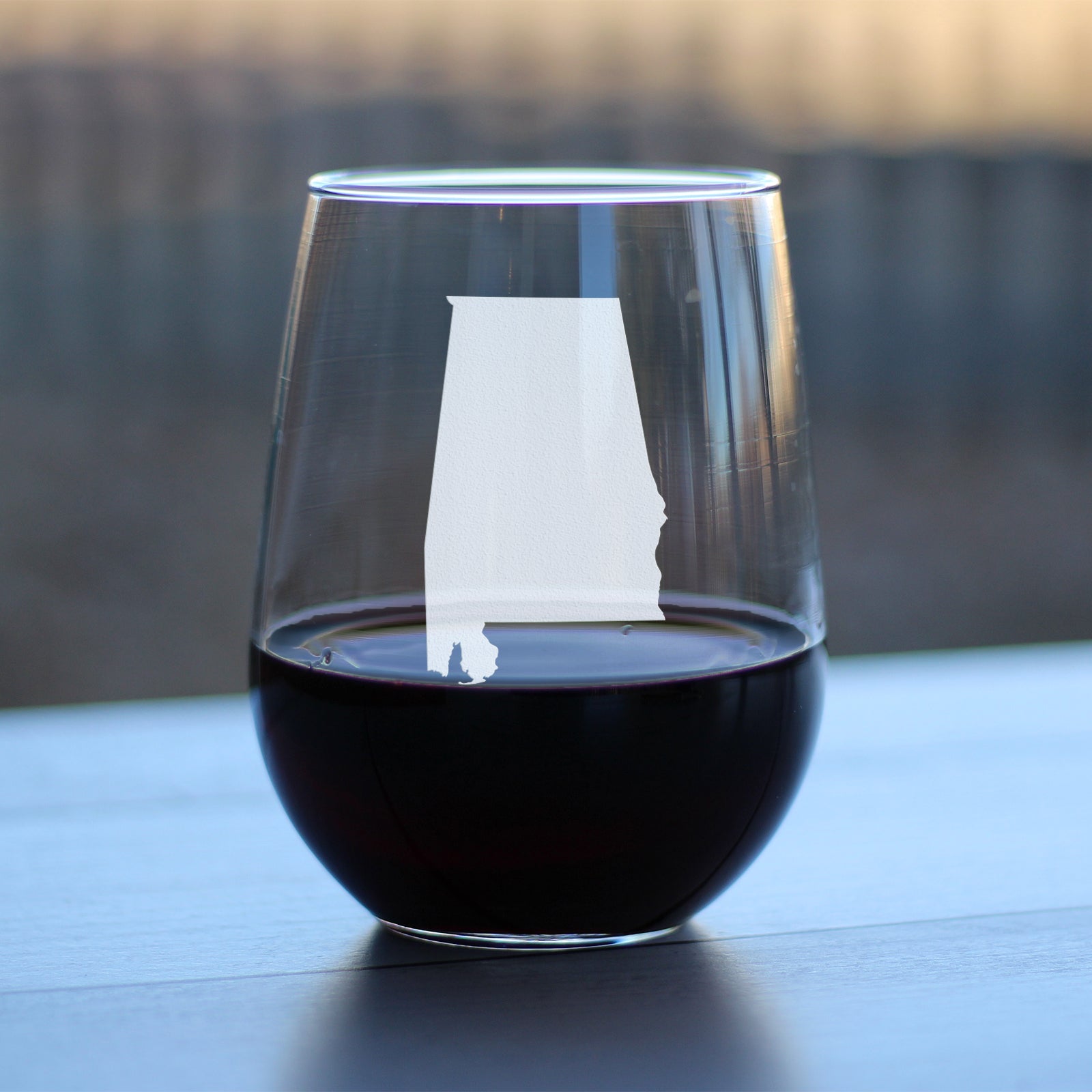 Alabama State Outline Stemless Wine Glass - State Themed Drinking Decor and Gifts for Alabaman Women & Men - Large 17 Oz Glasses