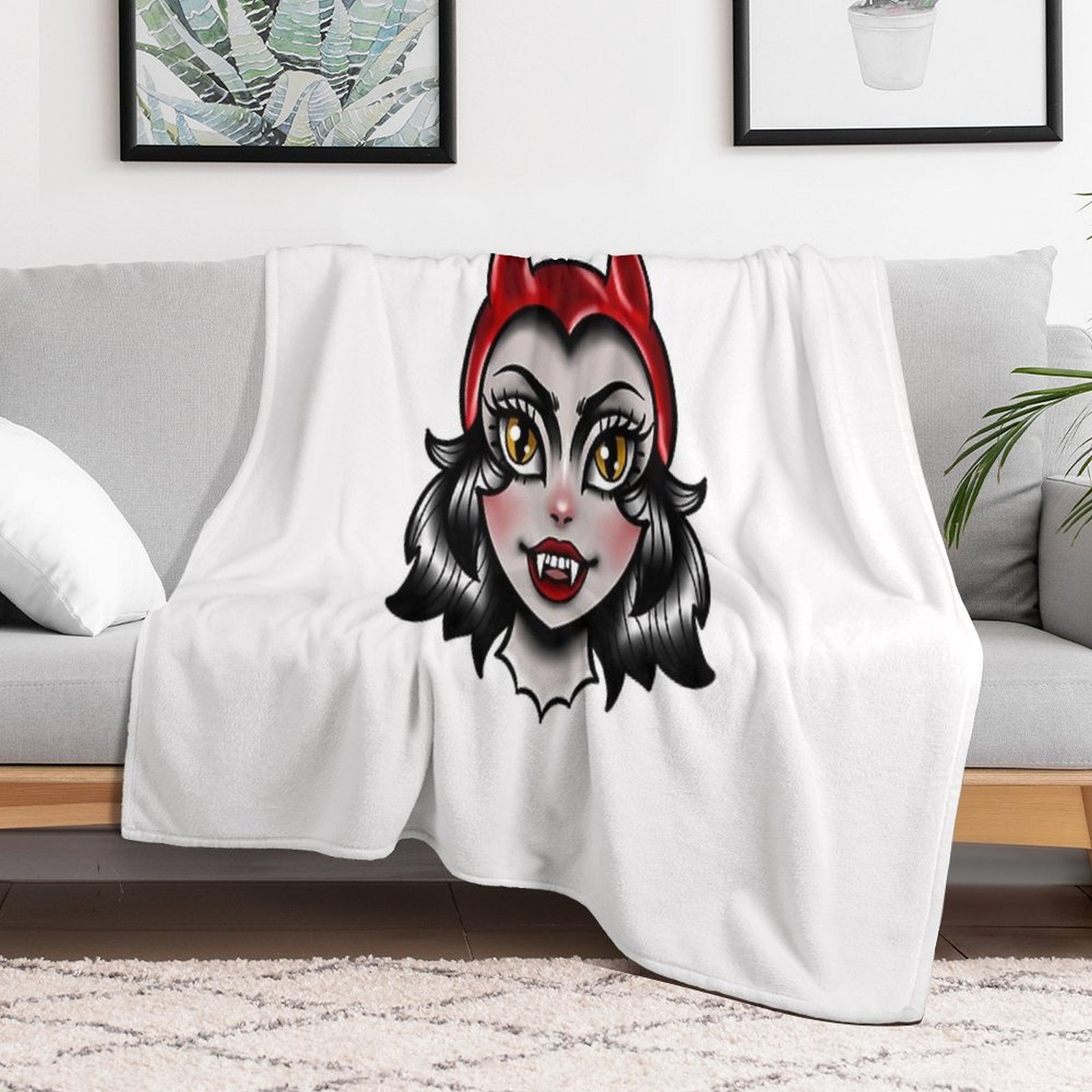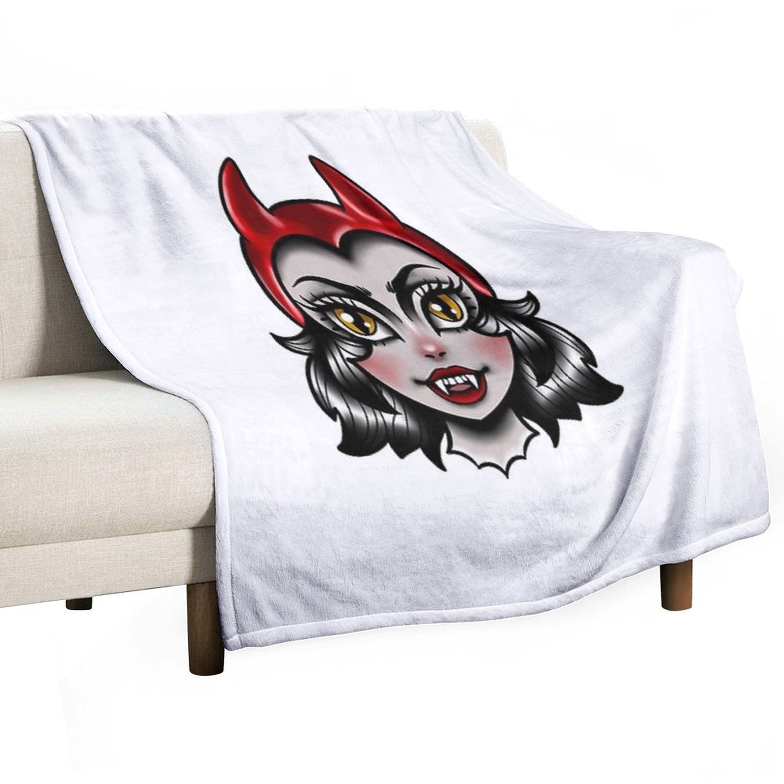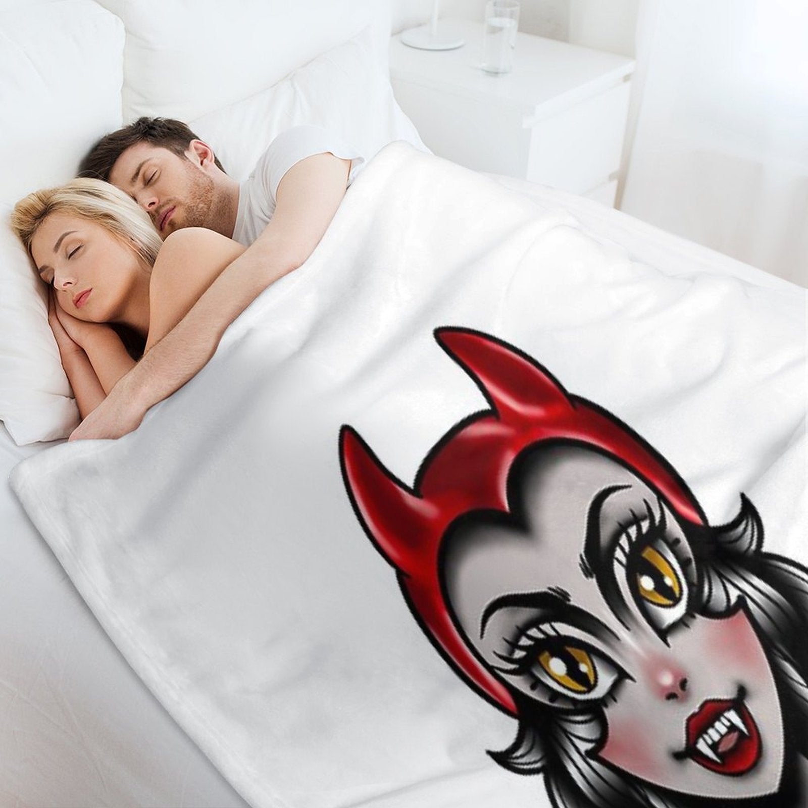American Traditional Devil Lady Throw Blanket ‐ American Traditional Devil Lady / 60"×80"