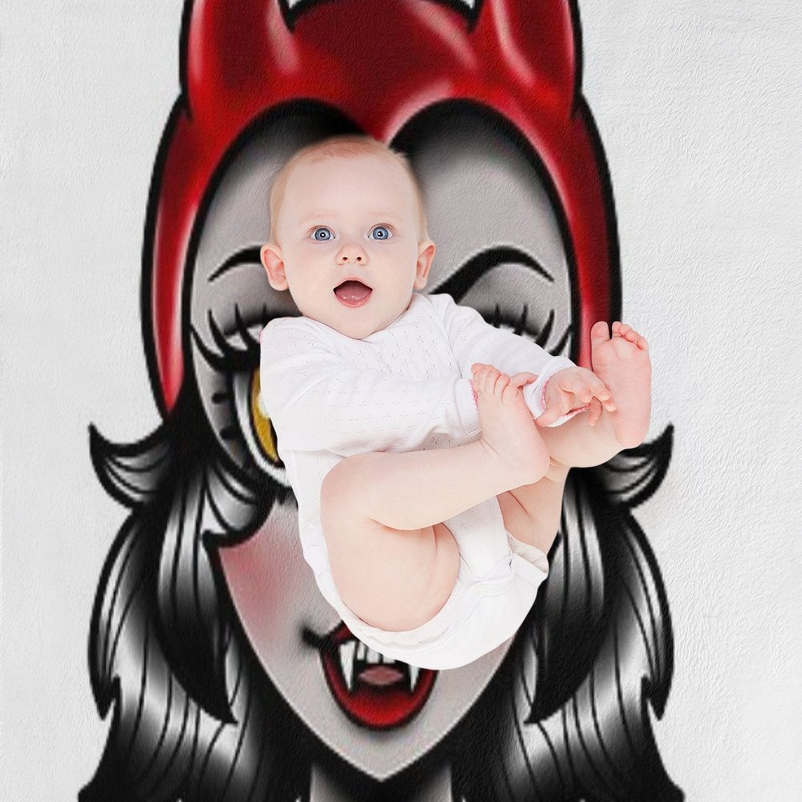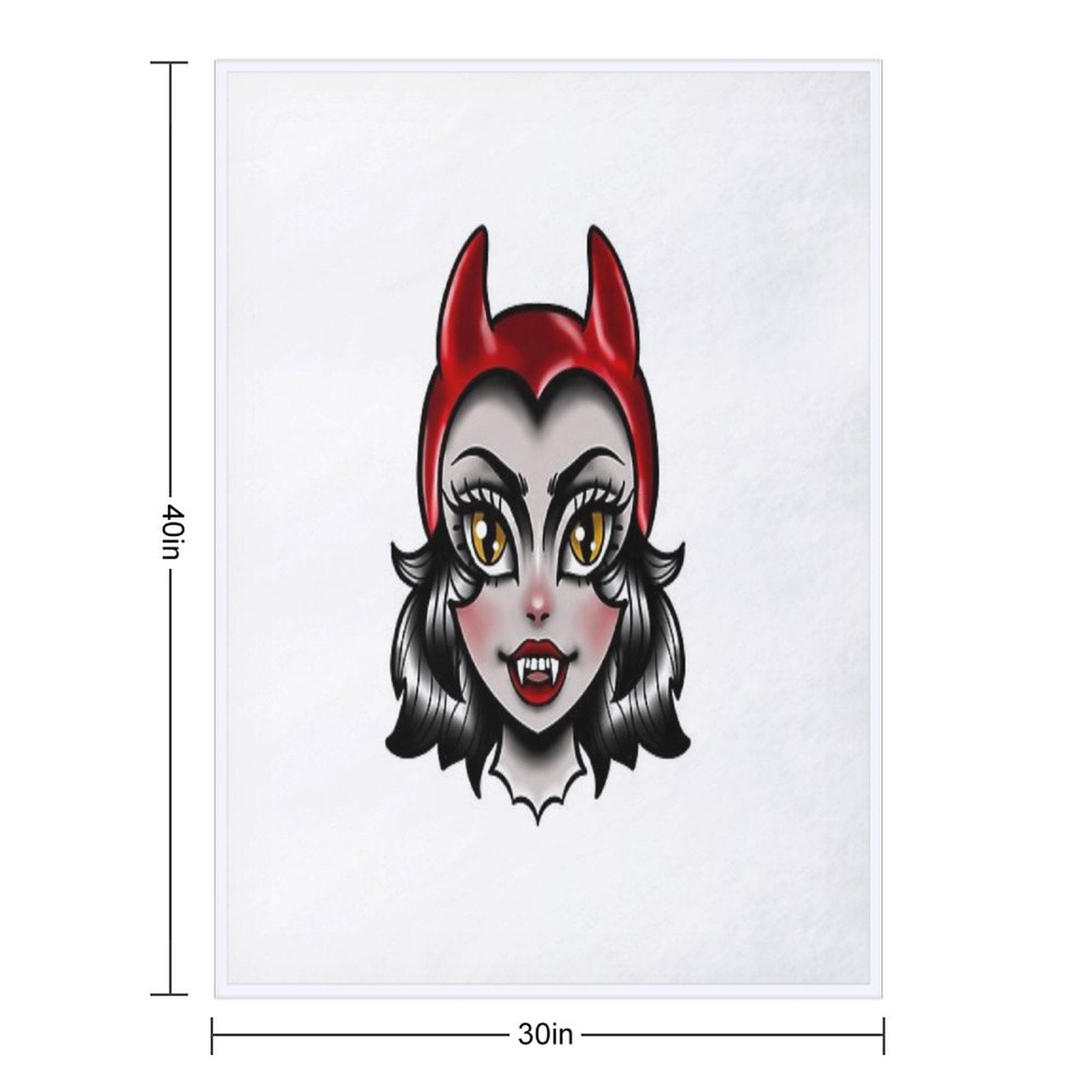 American Traditional Devil Lady Throw Blanket ‐ American Traditional Devil Lady / 30"×40"