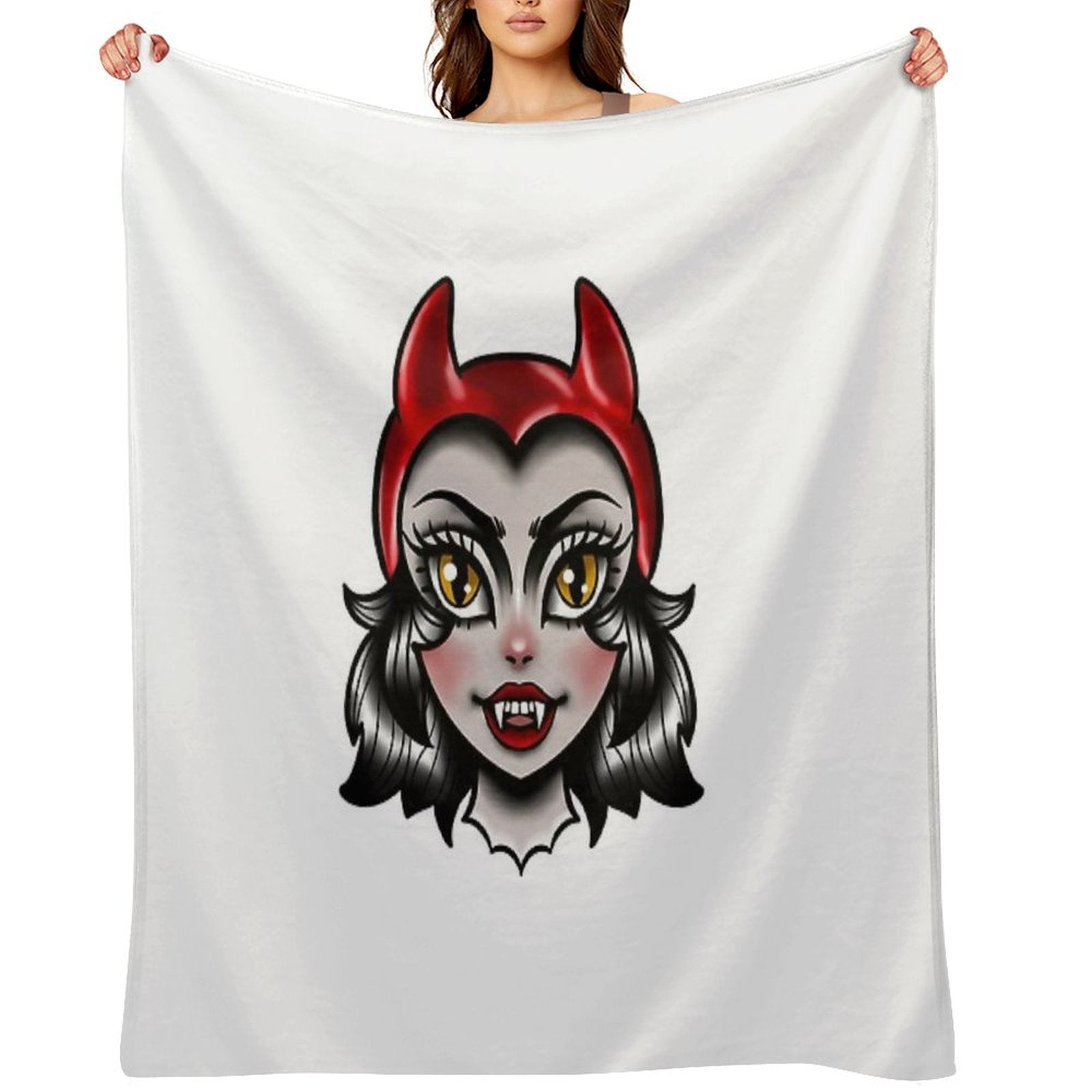 American Traditional Devil Lady Throw Blanket ‐ American Traditional Devil Lady / 40"×50"