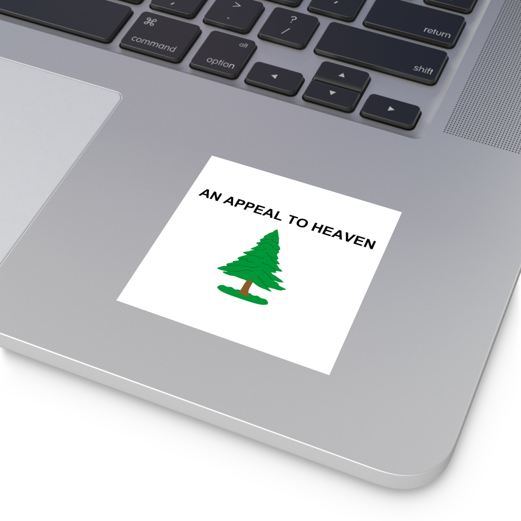Ideal for both indoor and outdoor use, the square-shaped sticker features the iconic "An Appeal to Heaven" flag, making it a powerful statement piece for anyone interested in American heritage and the values it represents.