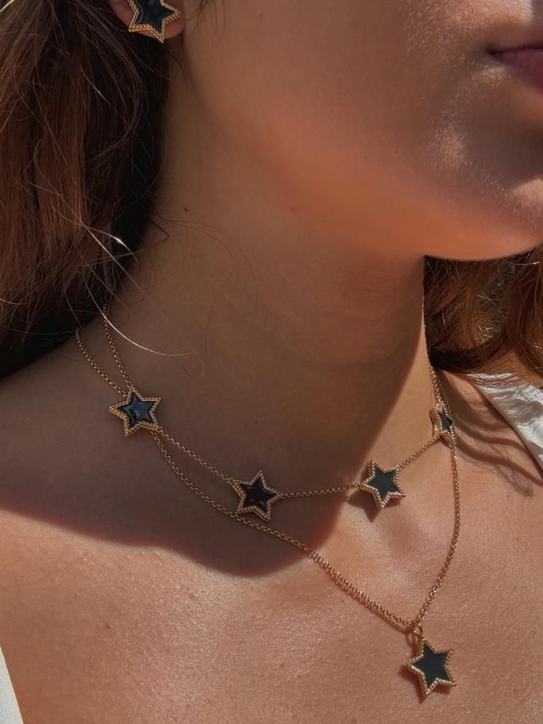 These spectacular enamel star stud earrings are fashioned with hypoallergenic 18k goldfilled, making them a great choice for sensitive ears. The design and craftsmanship make them a timeless classic, perfect for any occasion.
