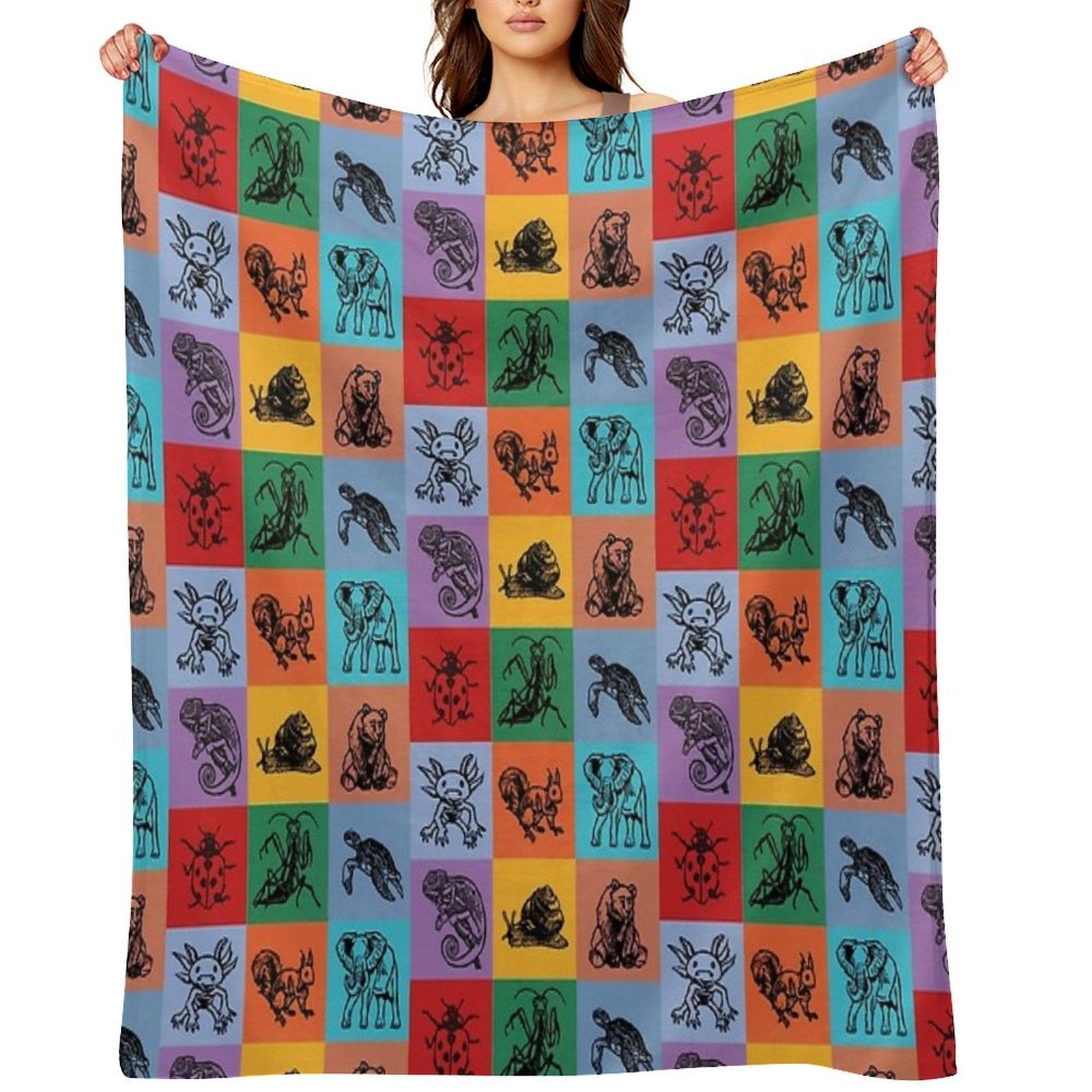 Animals Patchwork Throw Blanket ‐ 60"×80"