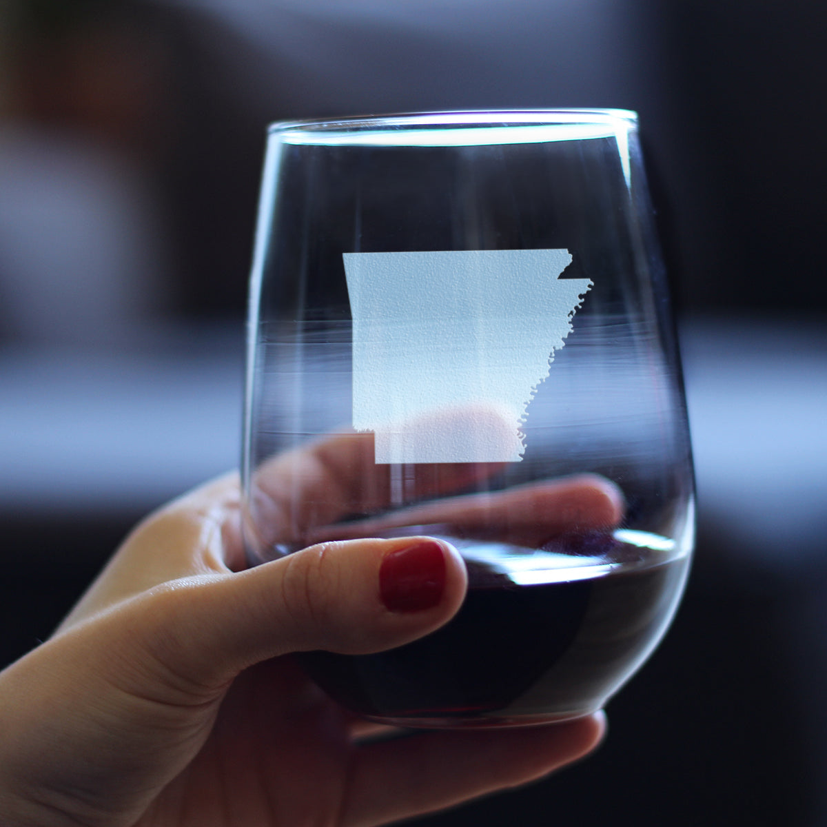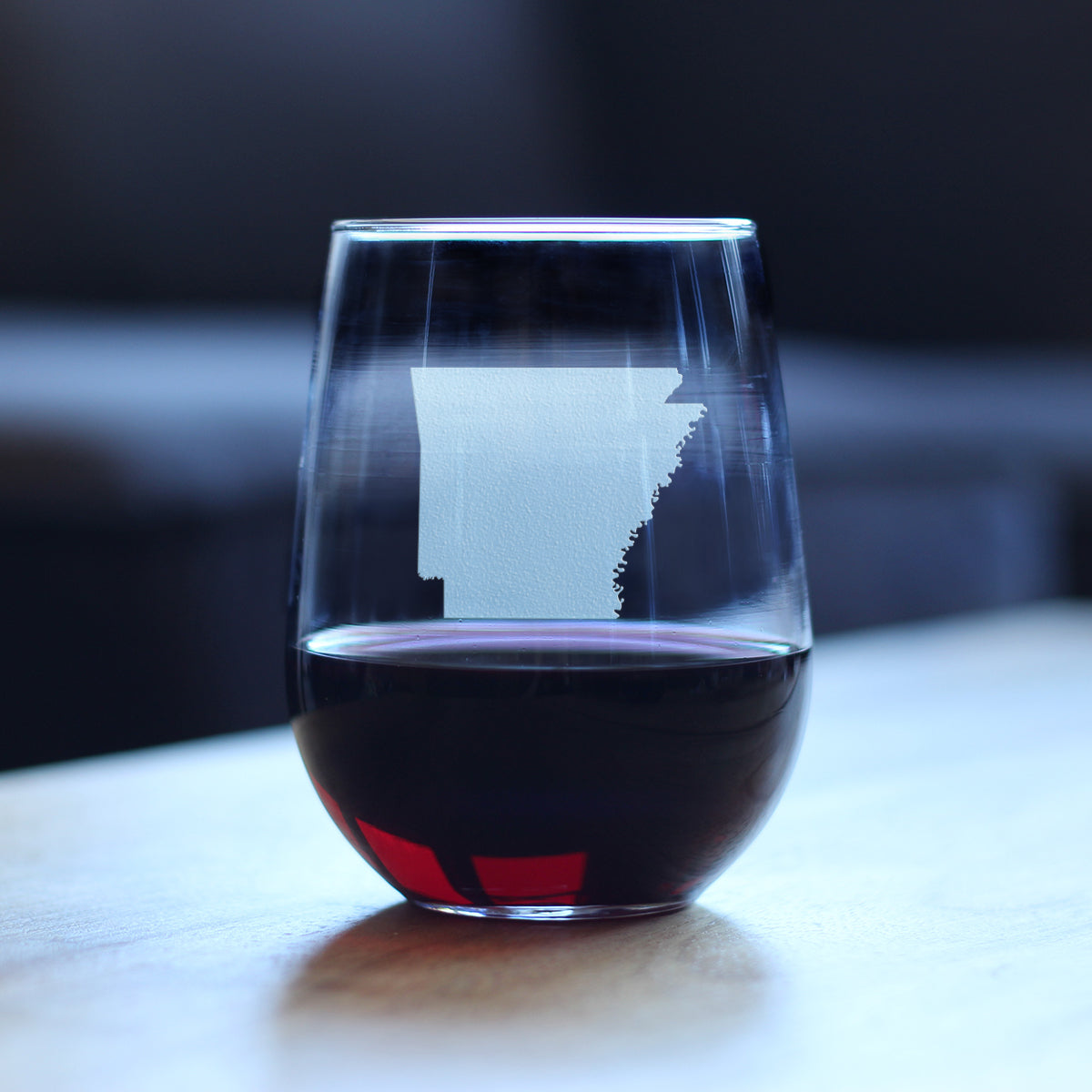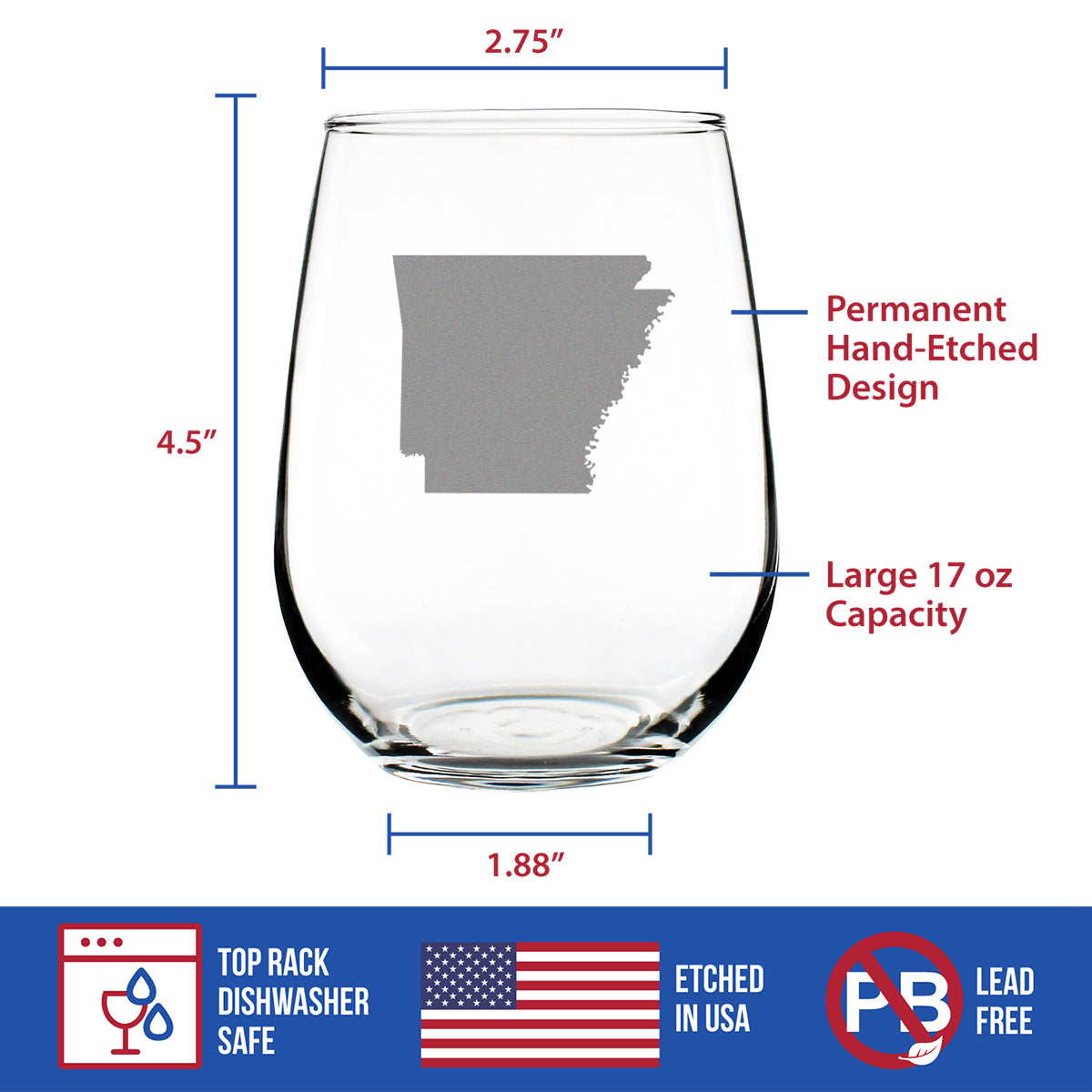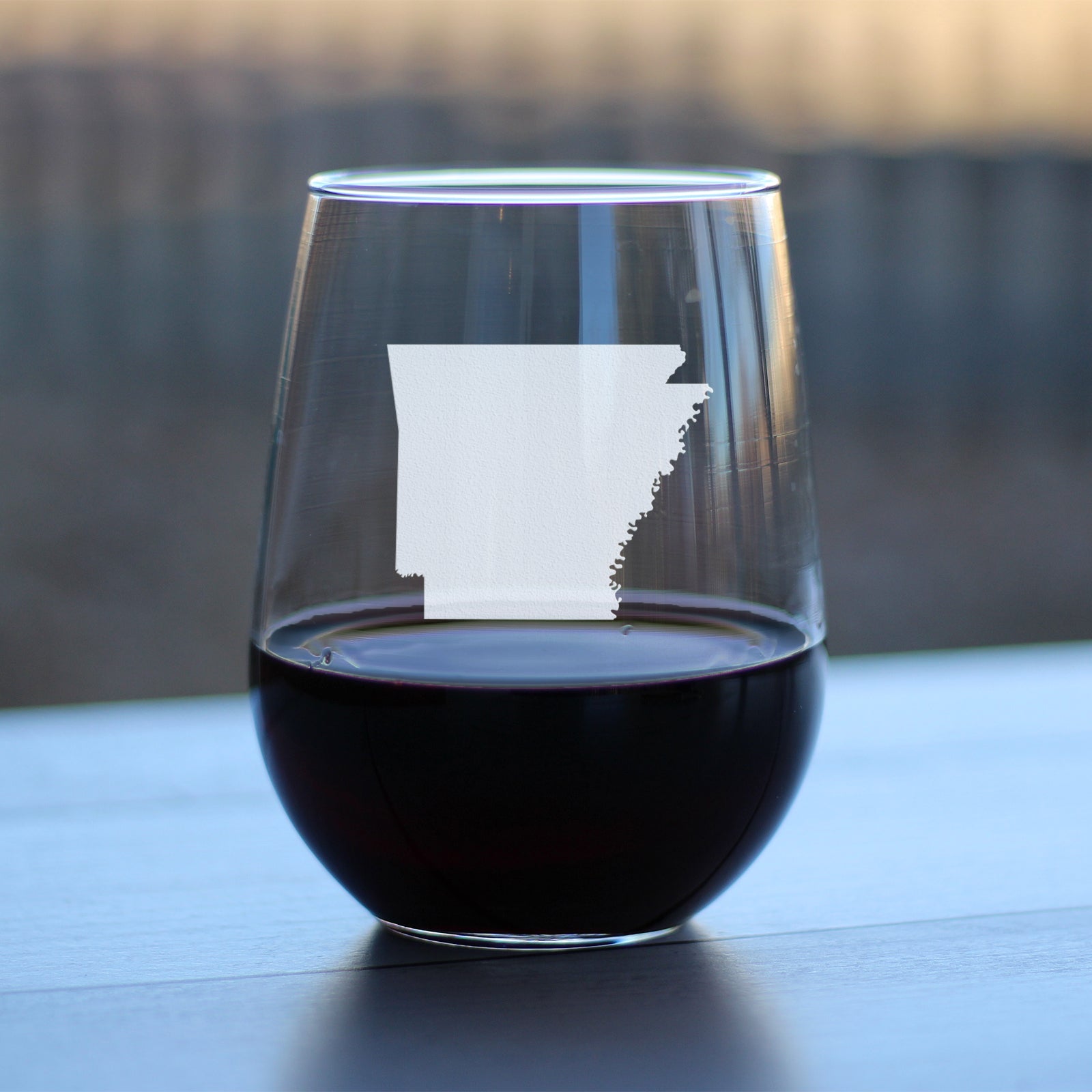 Arkansas State Outline Stemless Wine Glass - State Themed Drinking Decor and Gifts for Arkansans & Arkansawyer Women & Men - Large 17 Oz Glasses