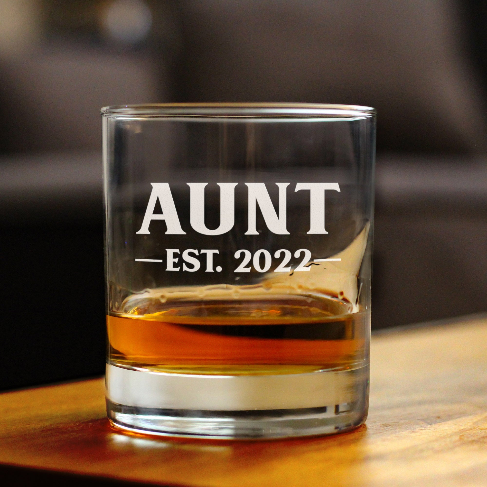 Aunt Est 2022 - New Aunties Whiskey Rocks Glass Gift for First Time Aunts - Bold 10.25 Oz Glasses