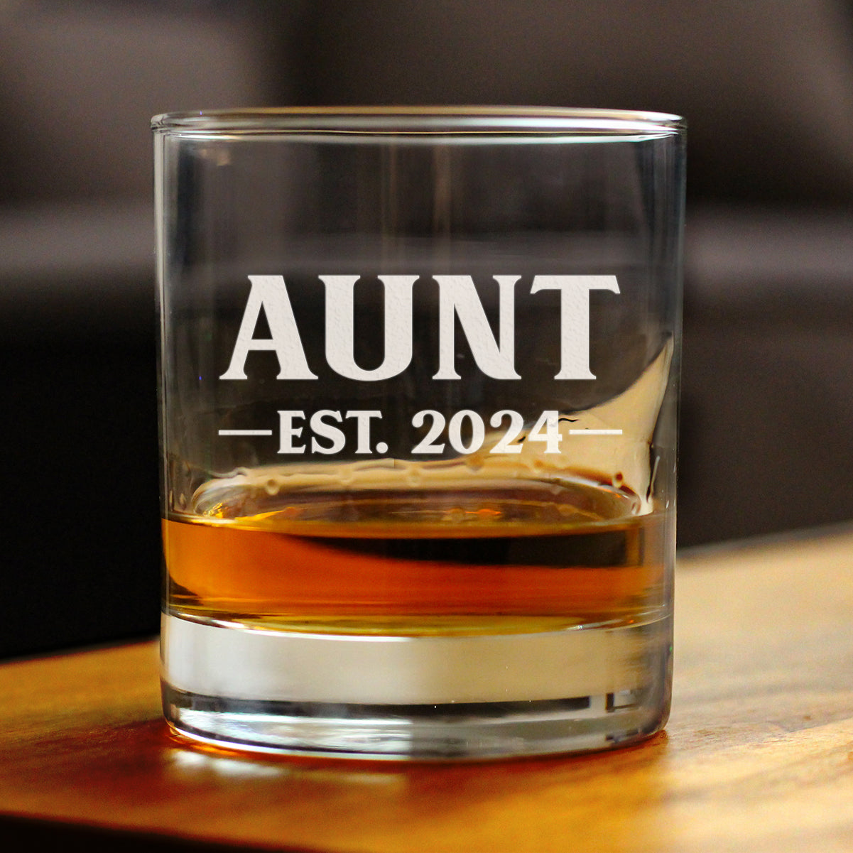 Aunt Est 2024 - New Aunties Whiskey Rocks Glass Gift for First Time Aunts - Bold 10.25 Oz Glasses
