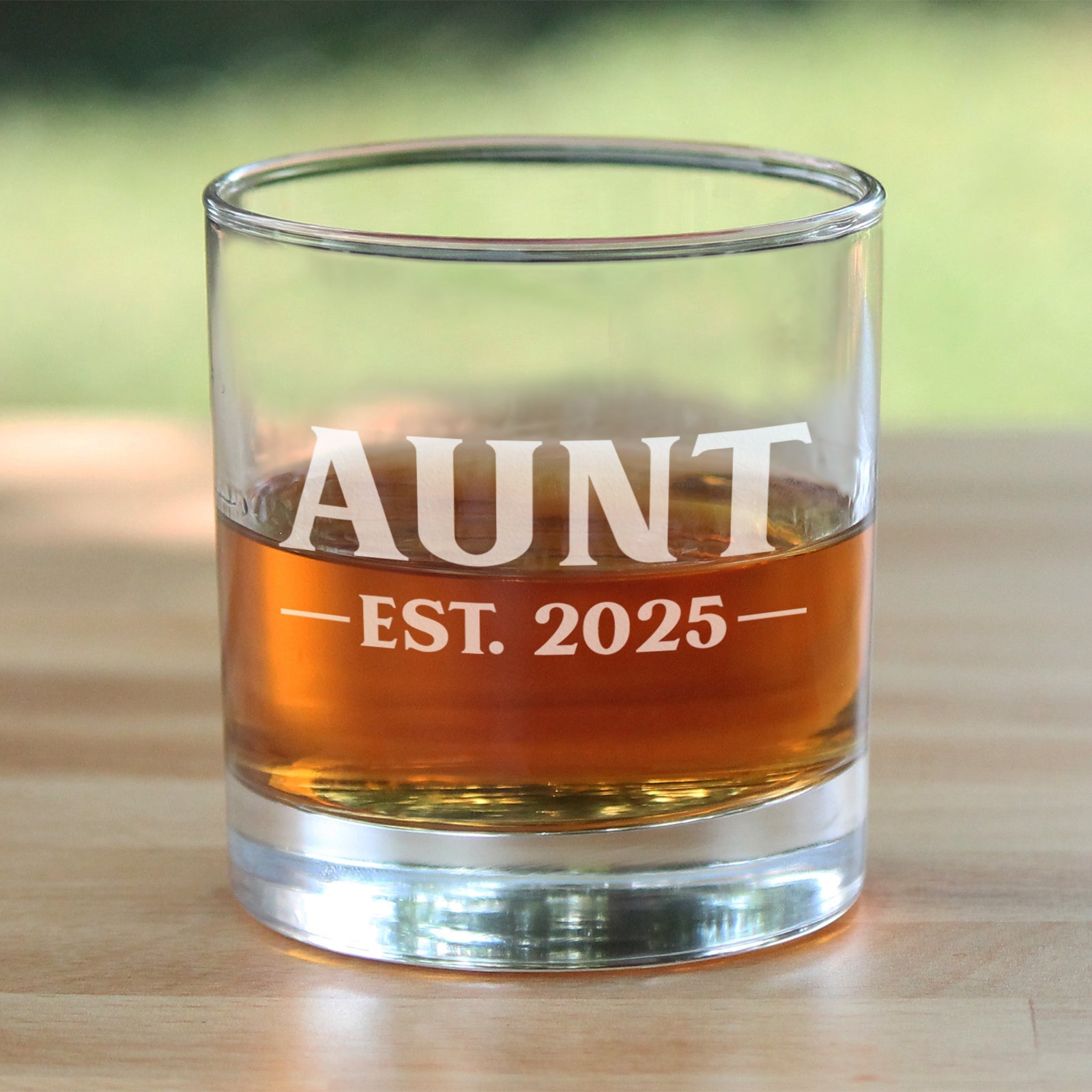 Aunt Est 2025 - New Aunties Whiskey Rocks Glass Gift for First Time Aunts - Bold 10.25 Oz Glasses