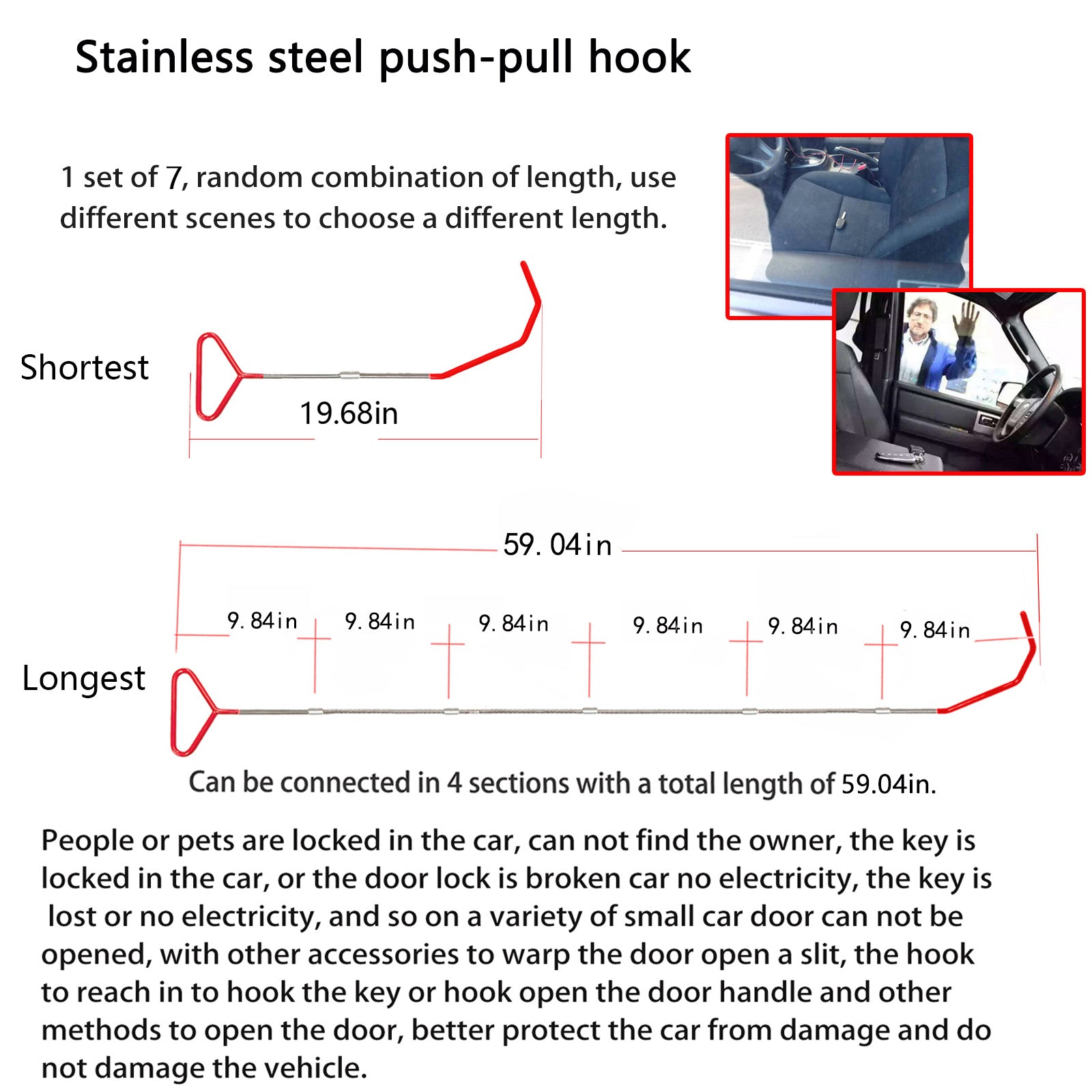 1. General Motors emergency kit, used for the adjustment of car doors and home Windows, opening AIDS in emergency situations. It's very effective. Will not damage your vehicle. Or it is a long-distance hook that can be used in emergencies if an item is hung on a tree, on a roof, or falls into a river. Professional kits for cars and trucks, each designed to be flexible and easy to operate, get the job done in minutes. Suitable for all vehicle types. It will not cause damage or leave any scratches.