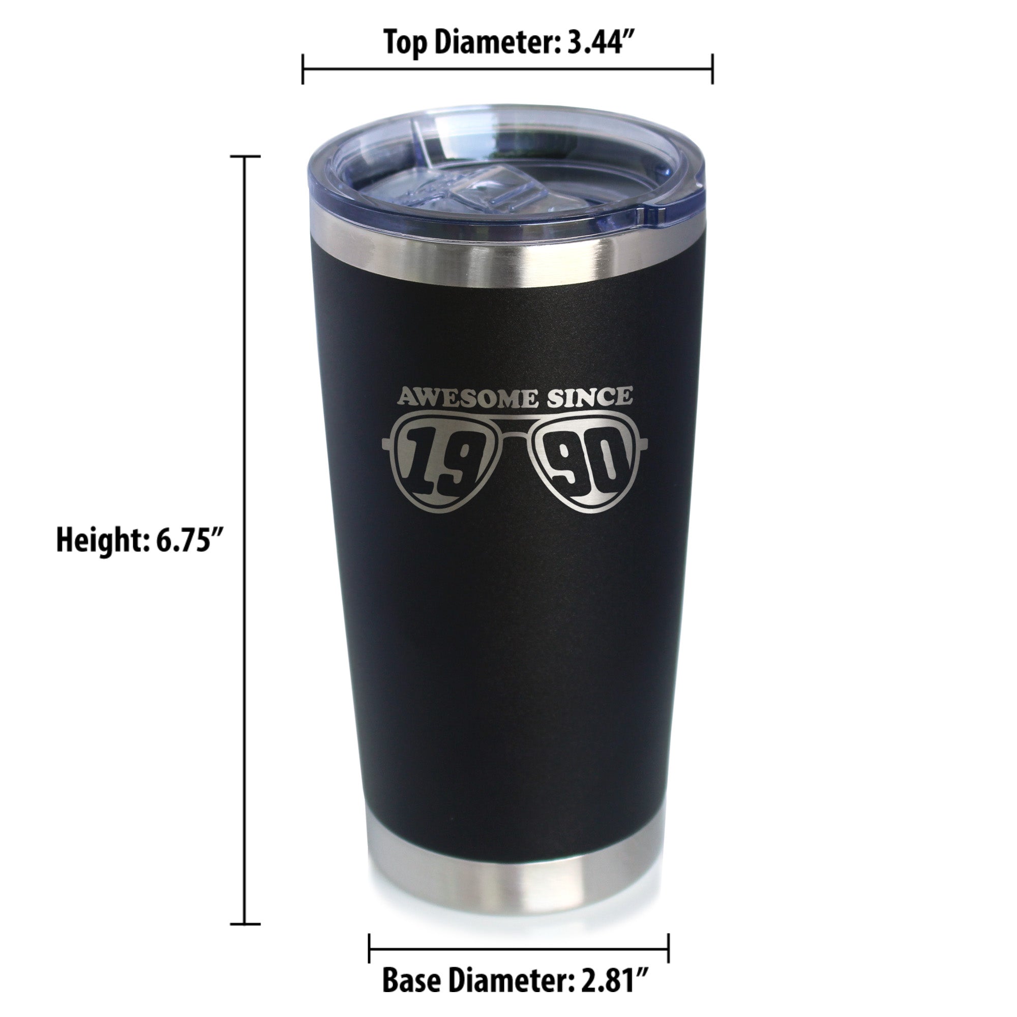 Awesome Since 1990 Insulated Coffee Tumbler with Sliding Lid 35th Birthday Gift Ideas 20oz Stainless Steel Tumbler ‐ Black
