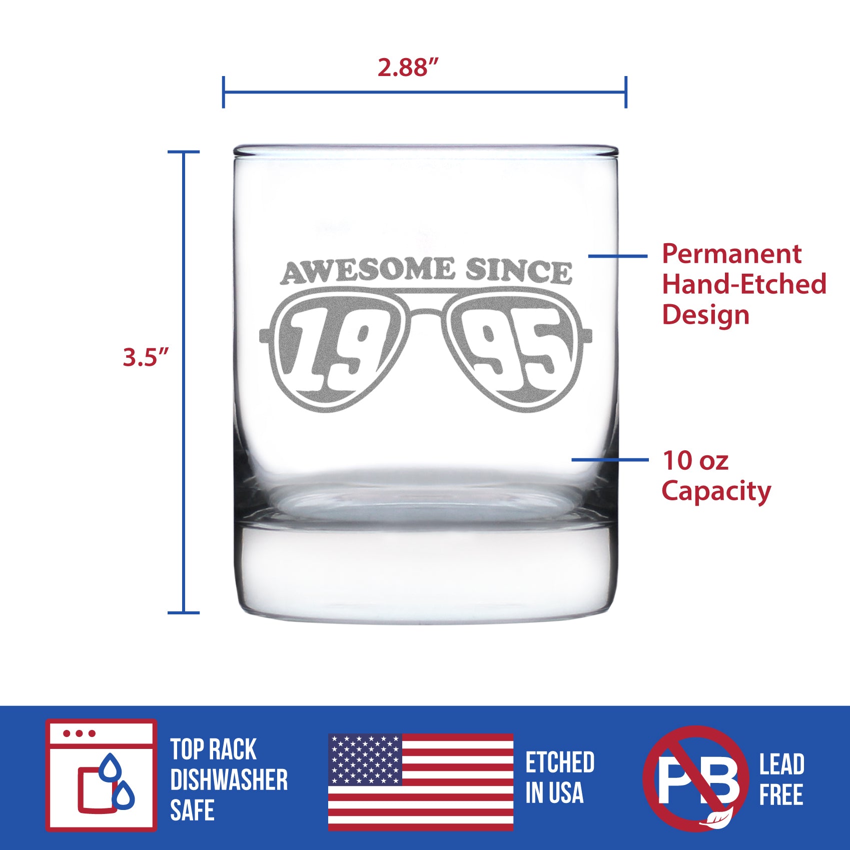 Awesome Since 1995 Engraved Rocks Glass Gifts 30th Birthday Gift Ideas Weighted Whiskey Glasses - 10.25 oz