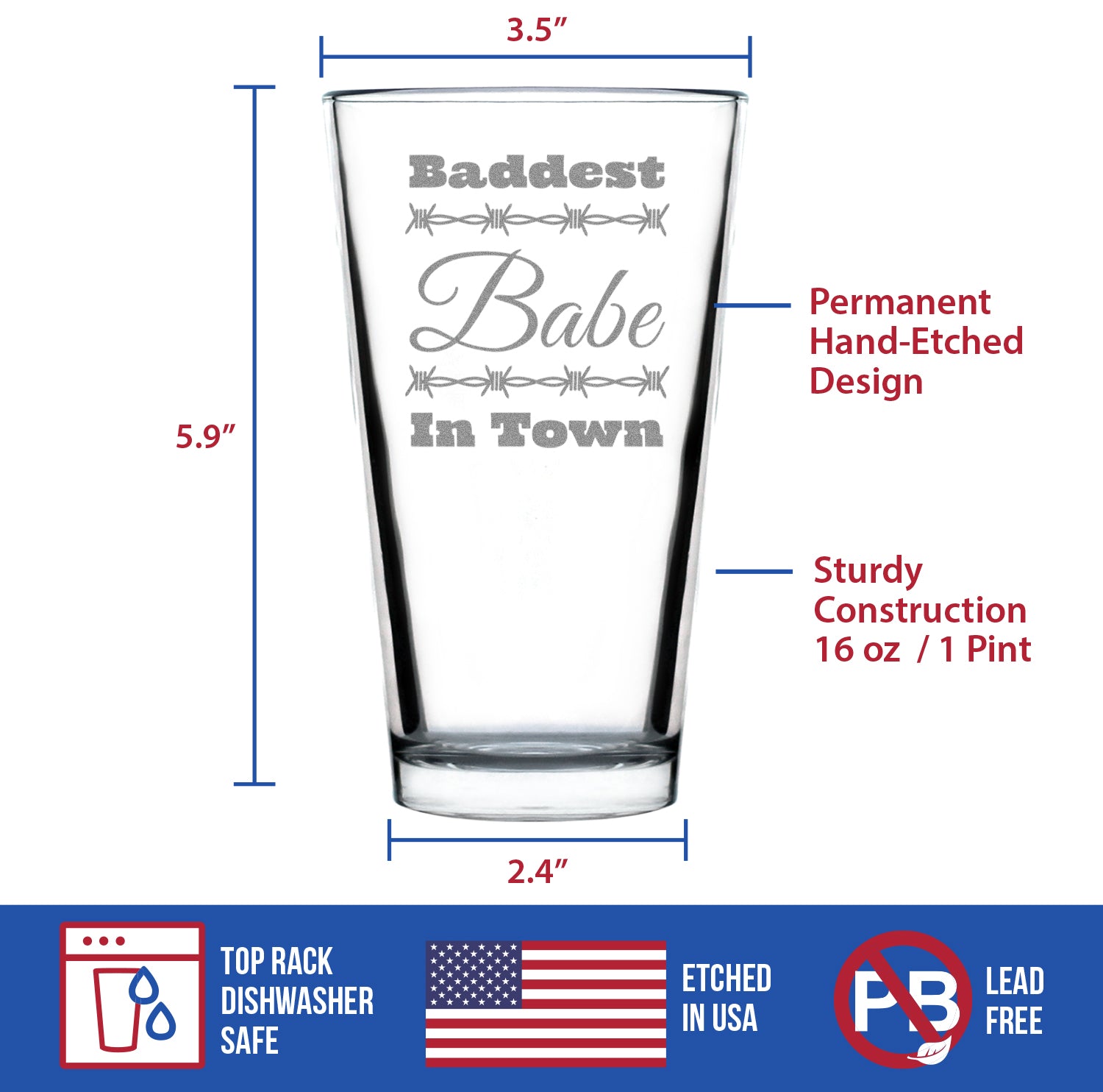 Baddest Babe in Town Engraved Pint Glass Gifts Gifts for Women with Attitude High Quality Pint Glasses for Beer - 16oz