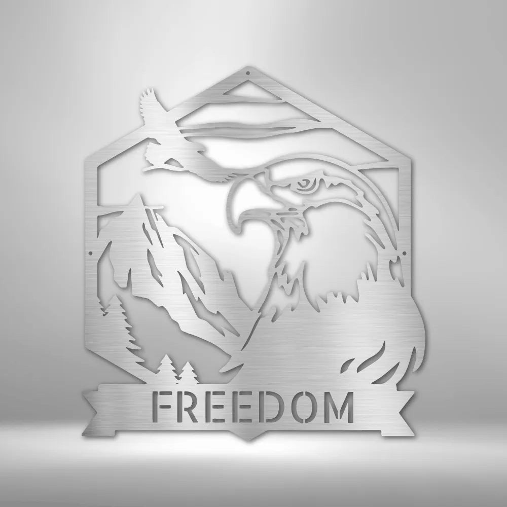 Elevate Your Decor with a View of the Wild β Customize Your "Bald Eagle Mountains Monogram" Steel Sign Today!