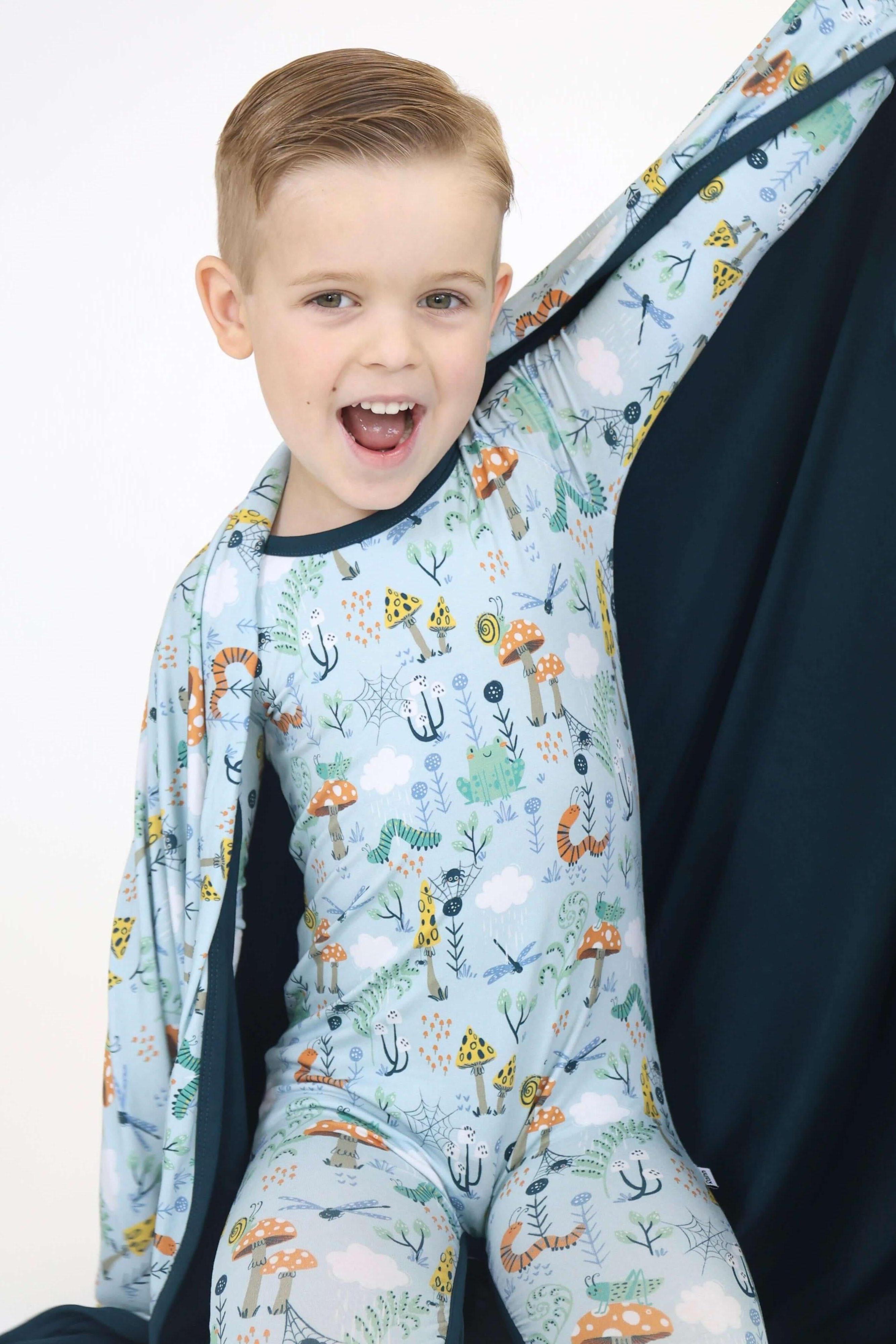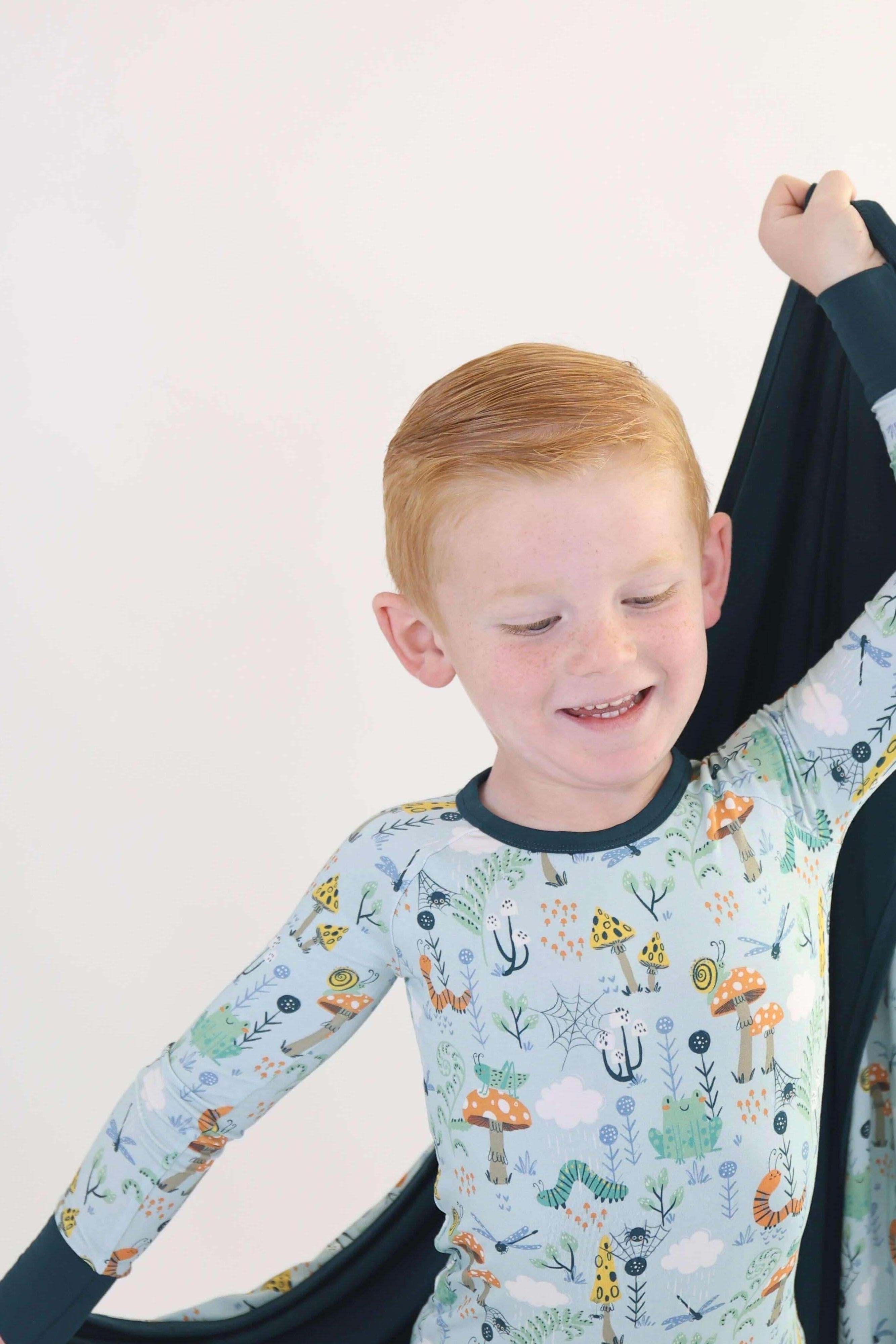 Wrap your little one in the magic of the forest with our Critter Hollow Bamboo Blanket. This charming, woodland-inspired print is alive with whimsical detailsāfrogs nestled near mushrooms, dragonflies gliding across the air, snails on tiny trails and playful critters hiding among ferns and webs. Designed for both warmth and imagination, it brings a spark of woodland wonder to naps, stroller rides and cozy snuggles.