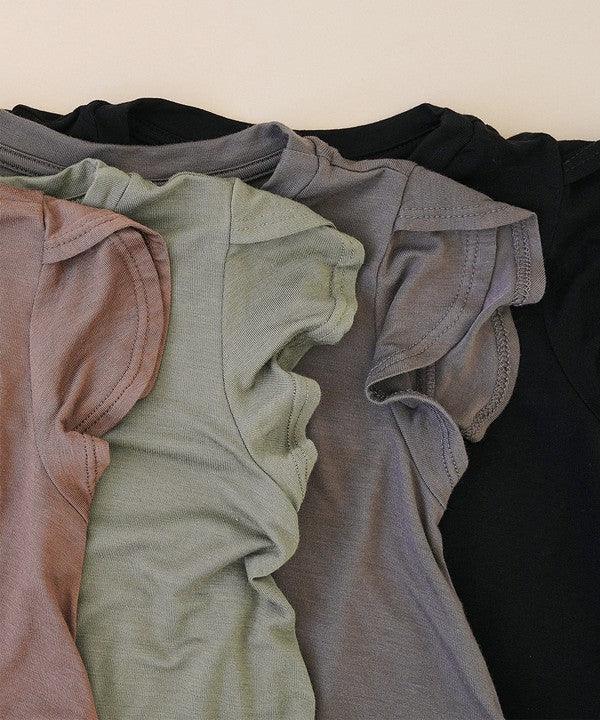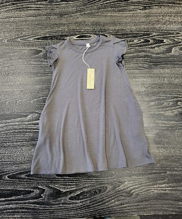 Adorable Tulip ruffle sleeve with pockets. , Neutral earth tone color ways. Easy fit Easy care!