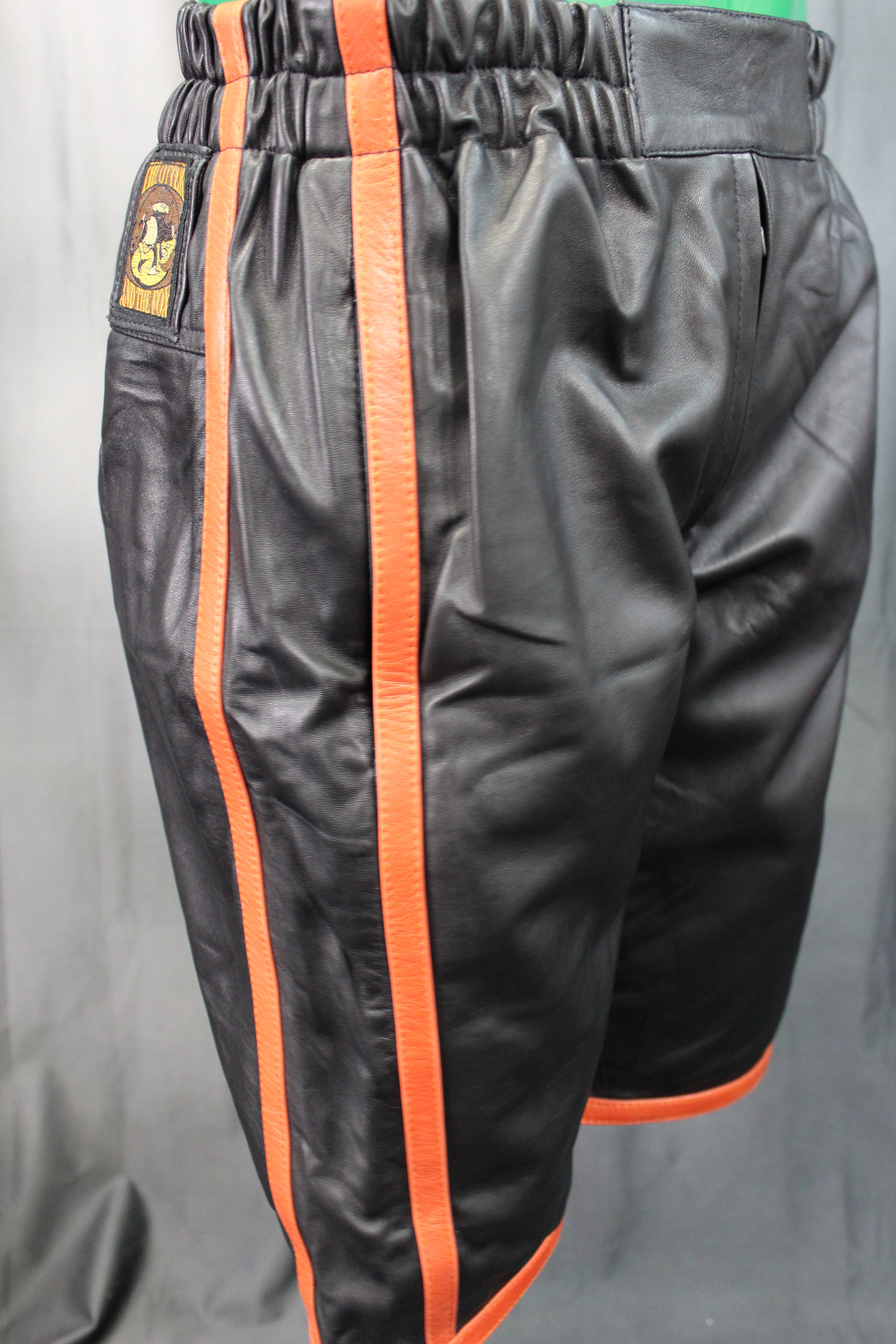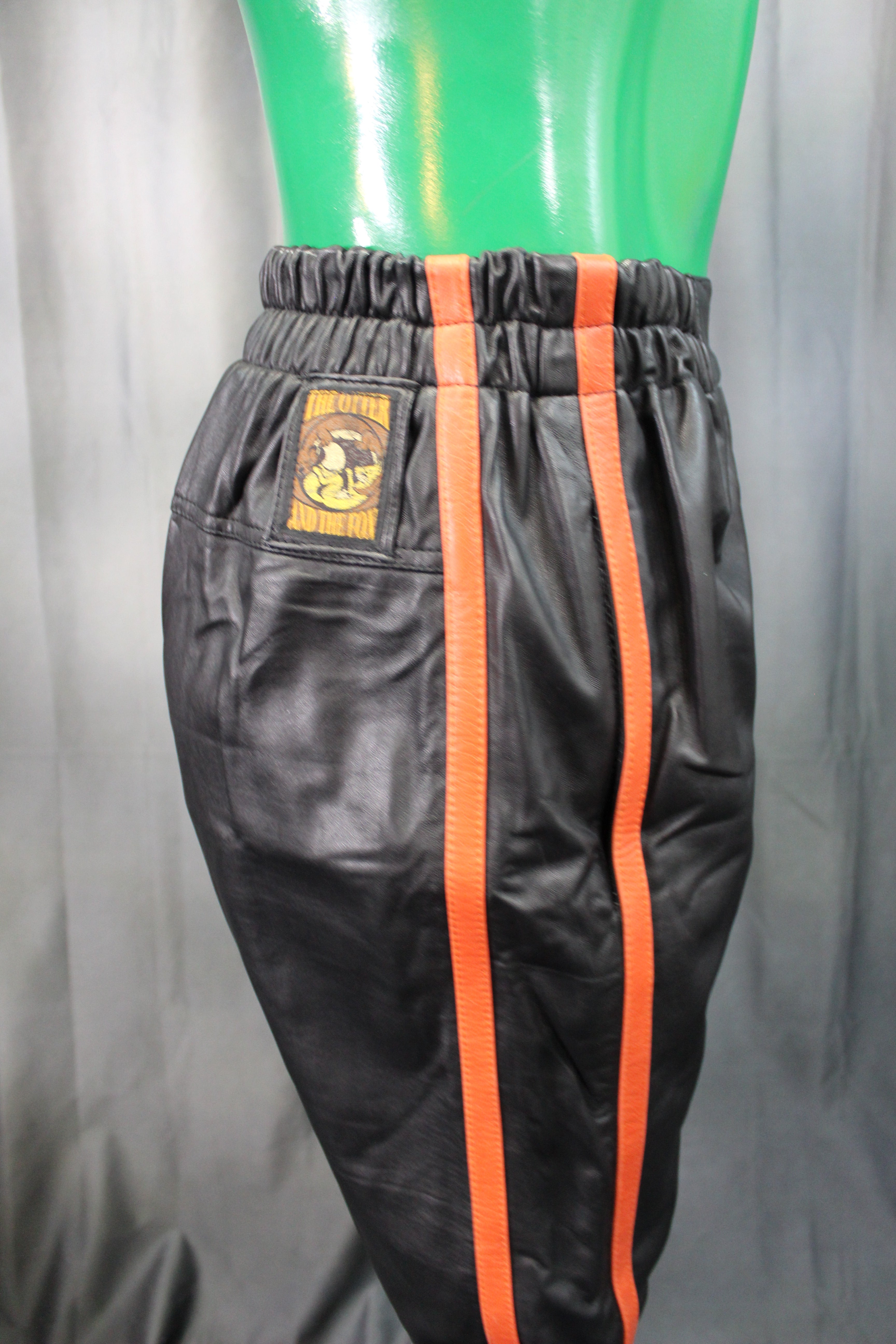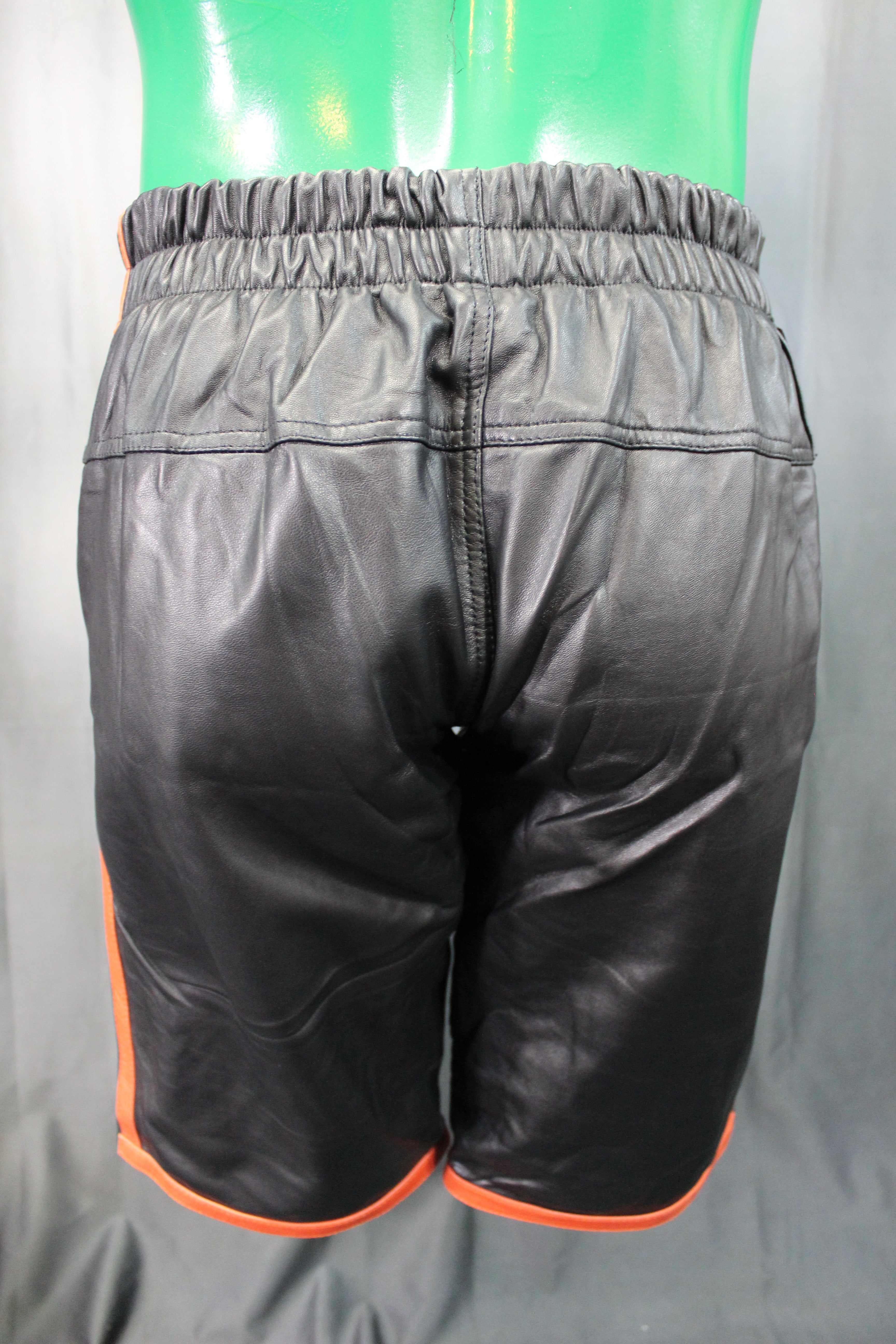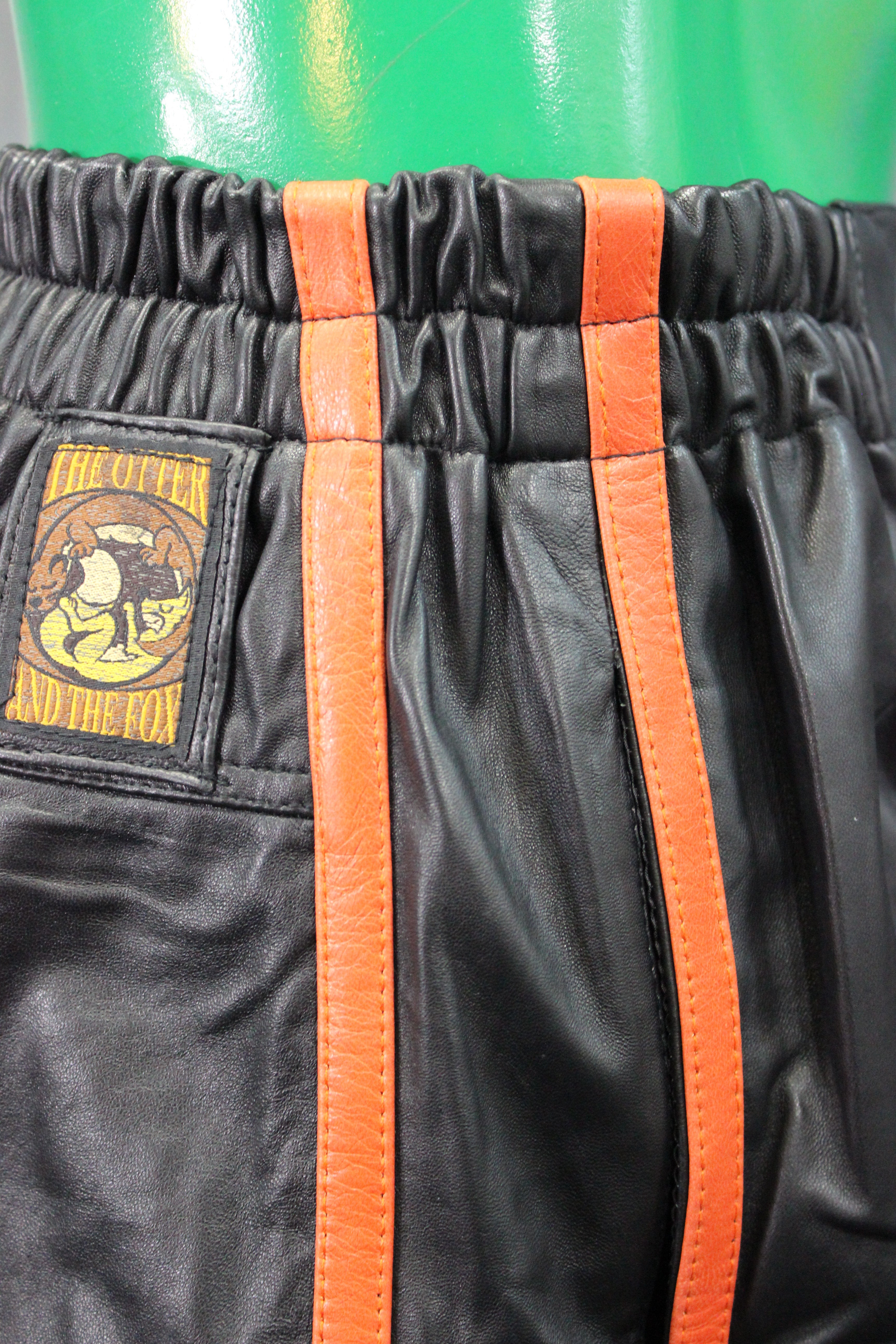 Enjoy the comfort of athletic wear with the luxury of leather with these shorts by The Otter and The Fox. These sporty shorts feature an elastic waistband for a comfortable, slip on fit, liner, and high quality leather. These shorts are loose and comfortable and are a perfect way to indulge your love of leather while looking and keeping cool in the hot summer.