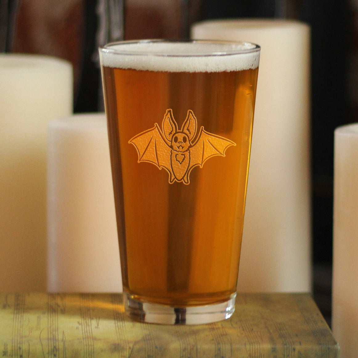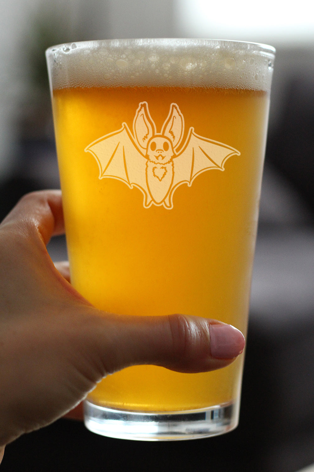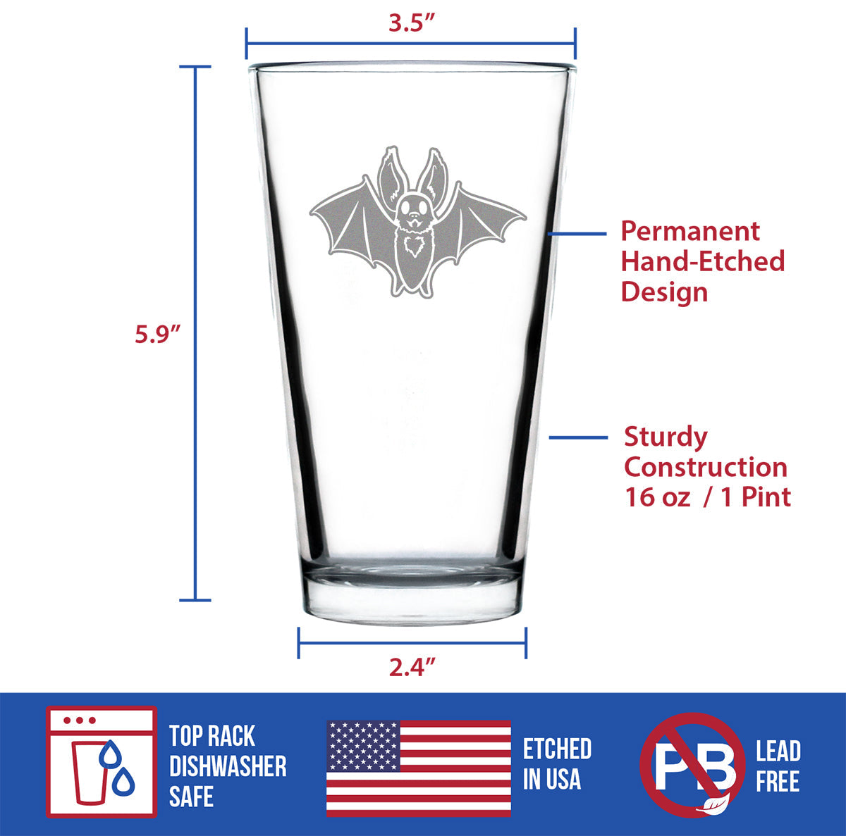 Bat Pint Glass for Beer - Funny Cute Bat Gifts - Spooky Fun Halloween Decor with Bats - 16 oz Glasses