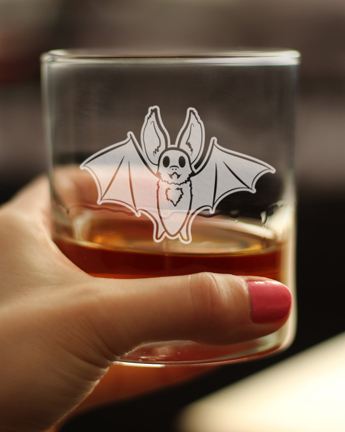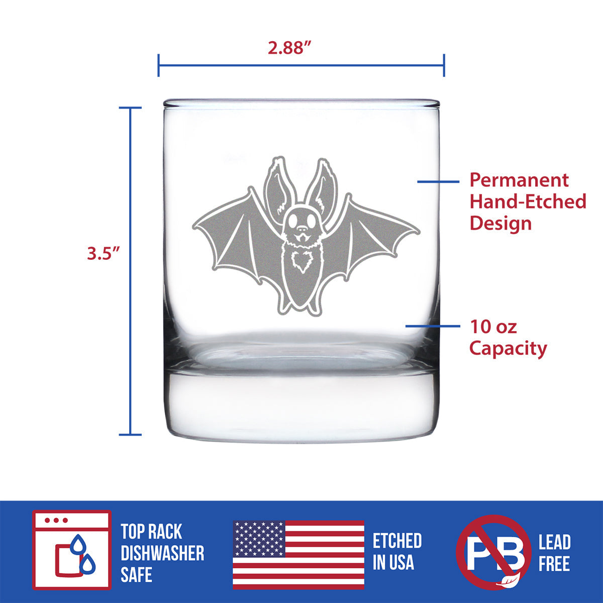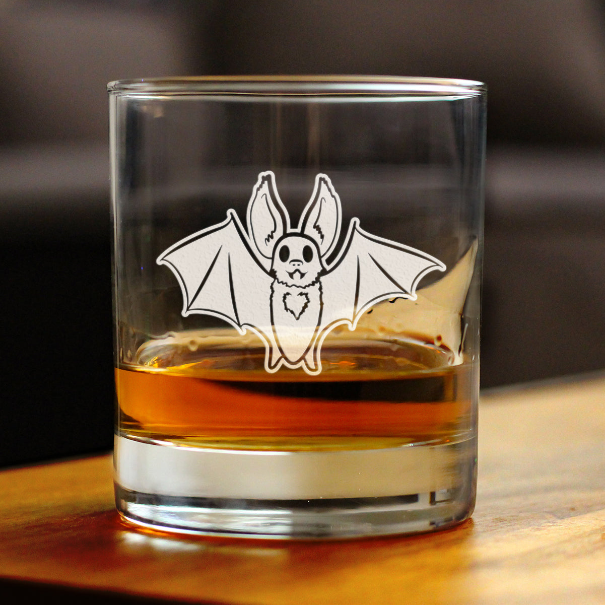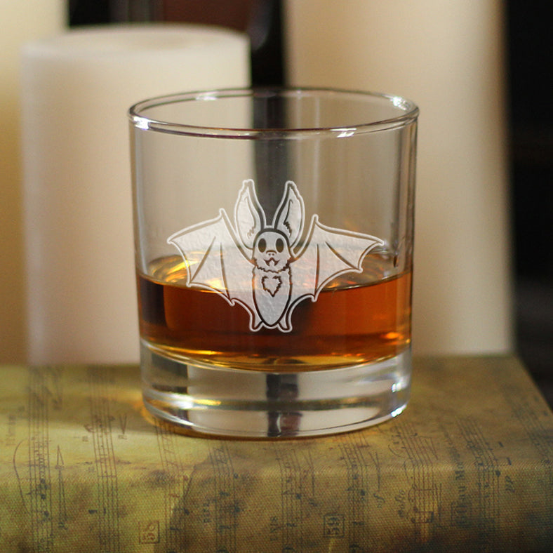 Bat Whiskey Rocks Glass - Funny Cute Bat Gifts - Spooky Fun Halloween Decor with Bats - 10.25 Oz Glasses