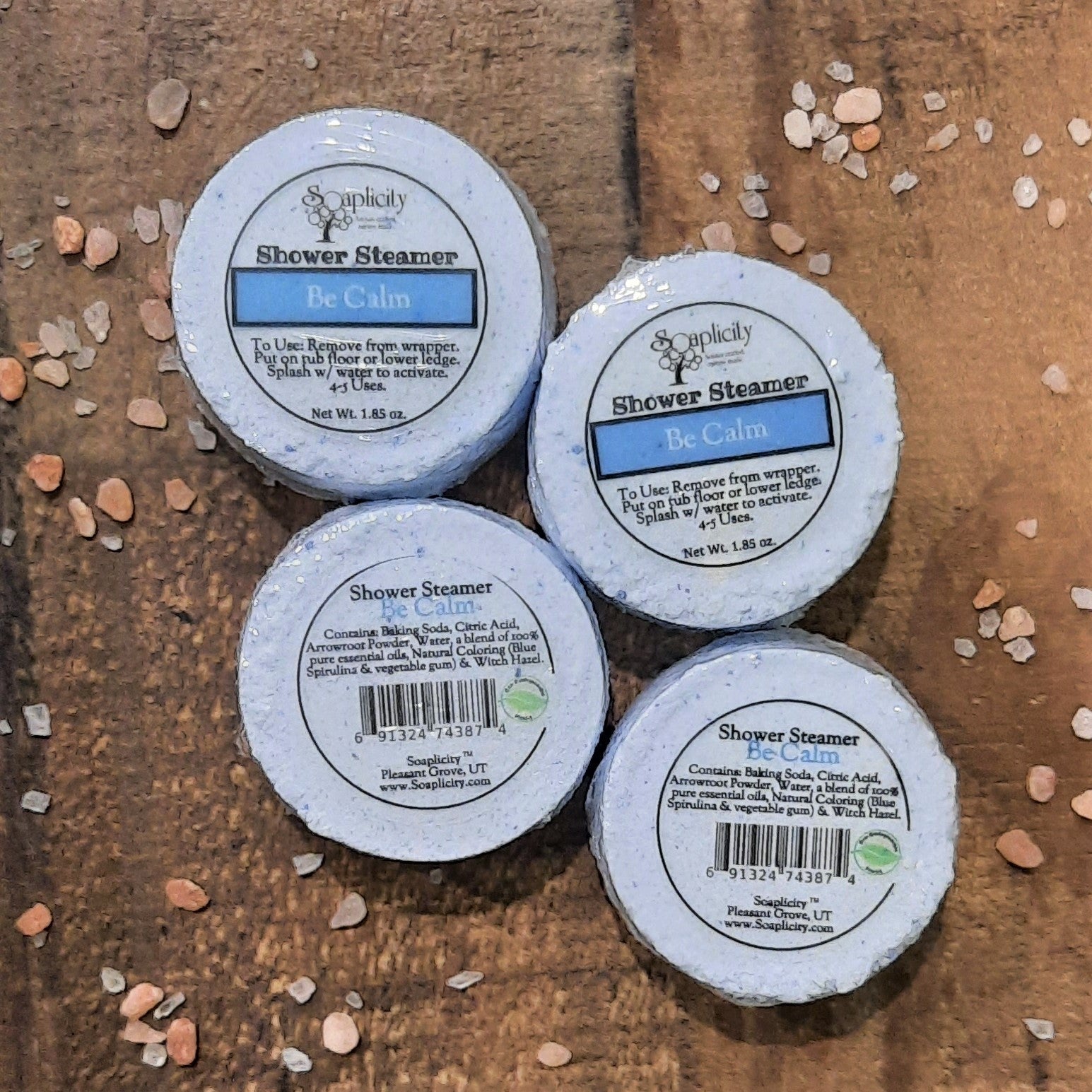 Be Calm Shower Steamers are 100% natural and formulated to provide an aromatic experience in a steamy shower.
