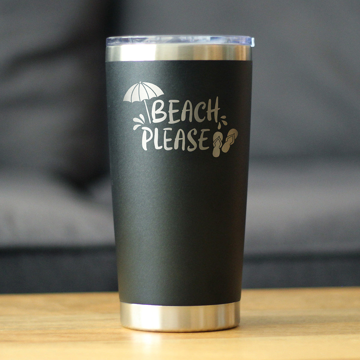 Beach Please - Insulated Coffee Tumbler Cup with Sliding Lid - Stainless Steel Travel Mug - Fun Beach Themed Gifts ‐ Black
