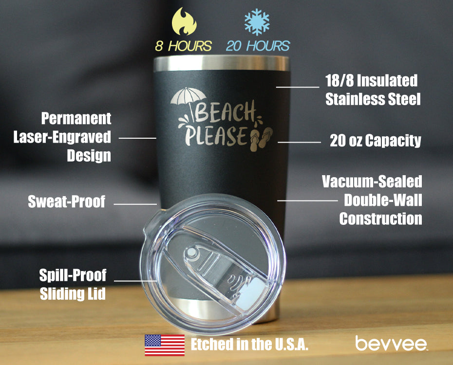 Beach Please - Insulated Coffee Tumbler Cup with Sliding Lid - Stainless Steel Travel Mug - Fun Beach Themed Gifts