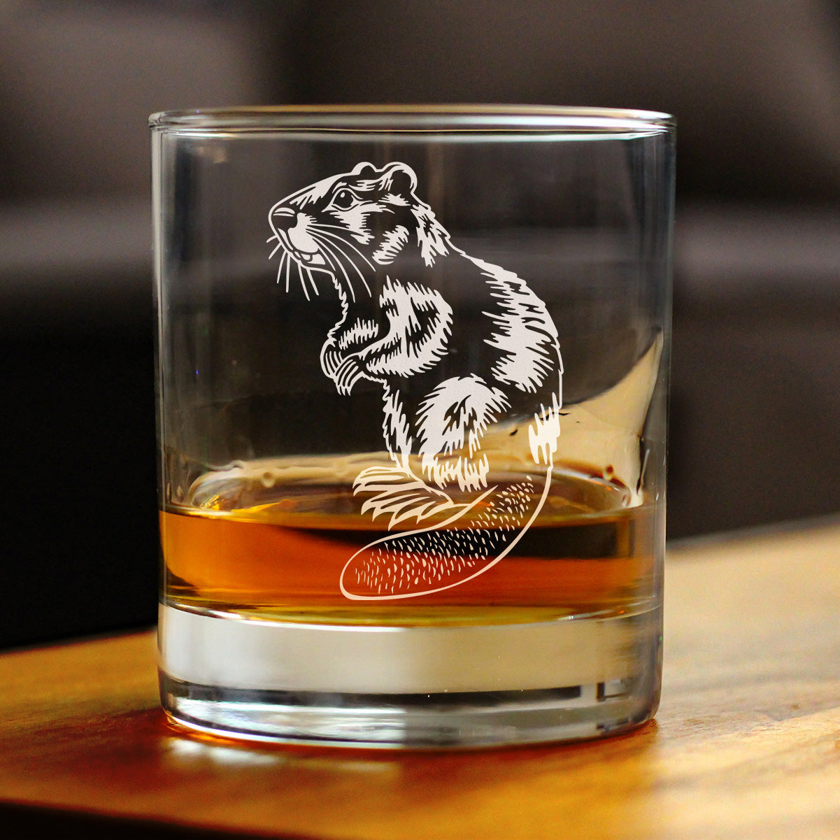 Beaver Engraved Rocks Glass Beaver Gifts and Rustic Cabin Home Decor Weighted Whiskey Glasses - 10.25 oz