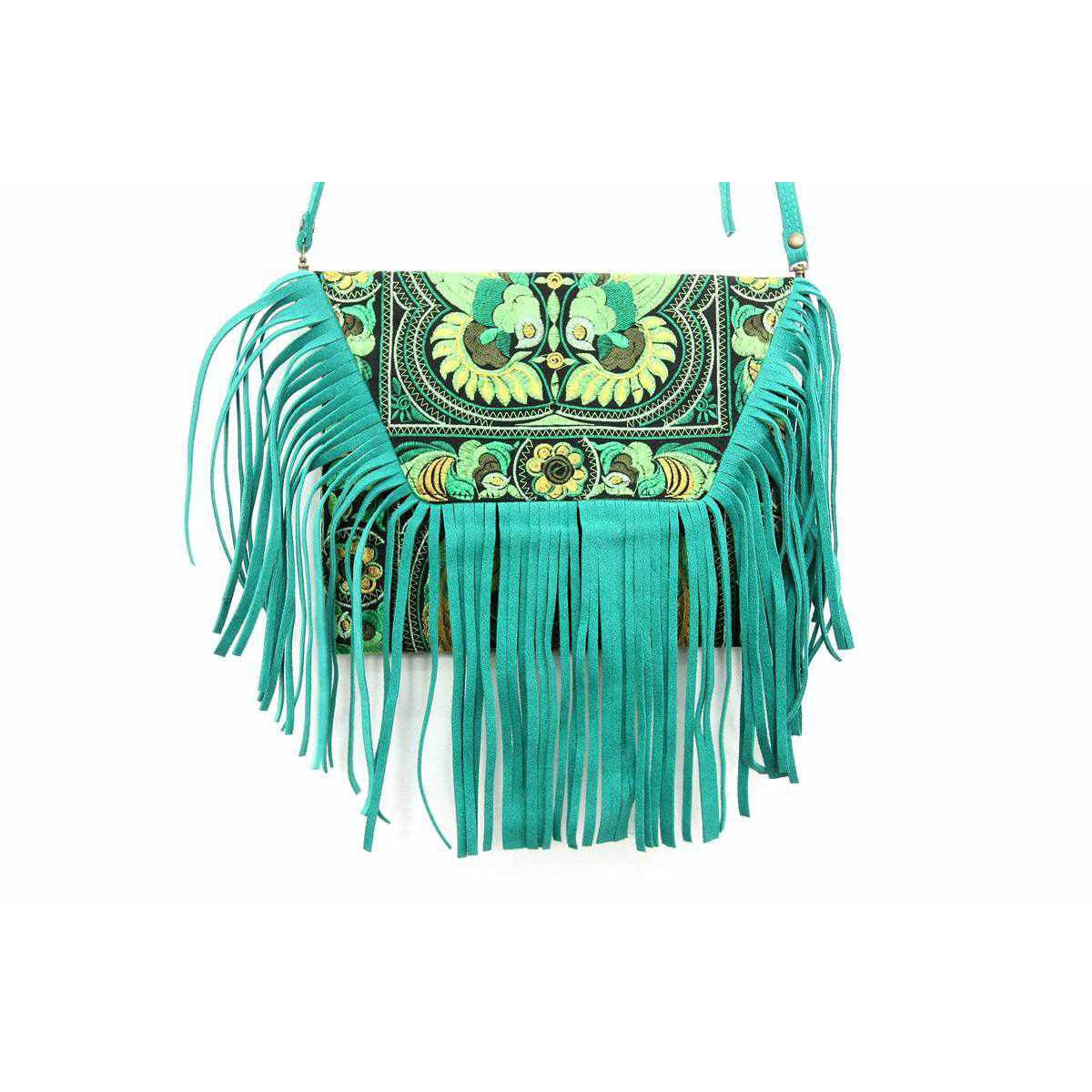 Bella Crossbody Embroidered Fringe Envelope Bag - Thailand ‐ Green