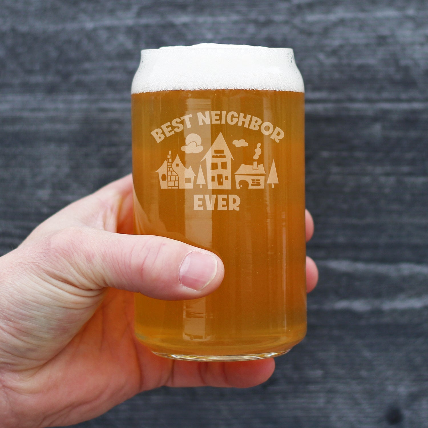 Best Neighbor Ever - Cute Beer Can Pint Glass, Etched Sayings, Moving Gift