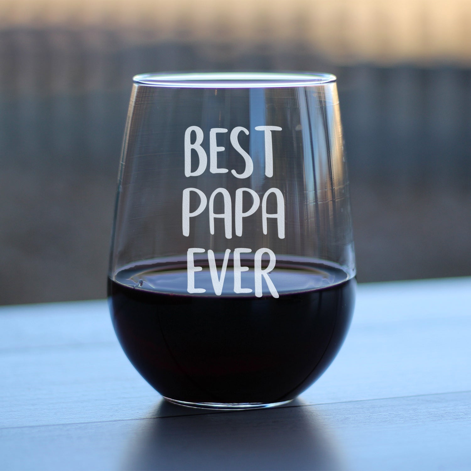 Best Papa Ever Cute Stemless Wine Glass, Large 17 Ounce Size, Etched Sayings, Father's Day or Birthday Gift for Grandpa