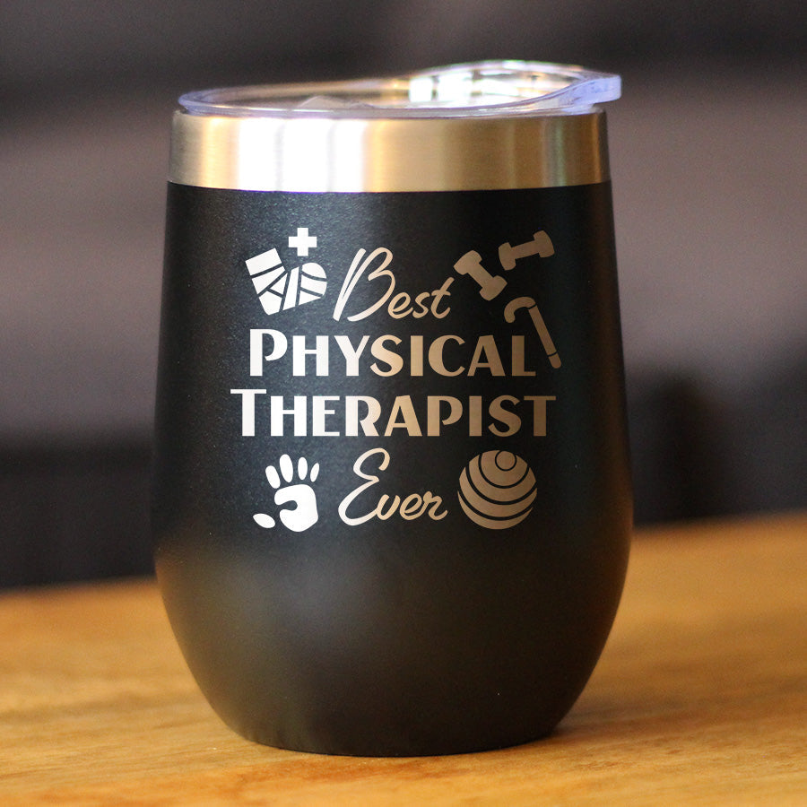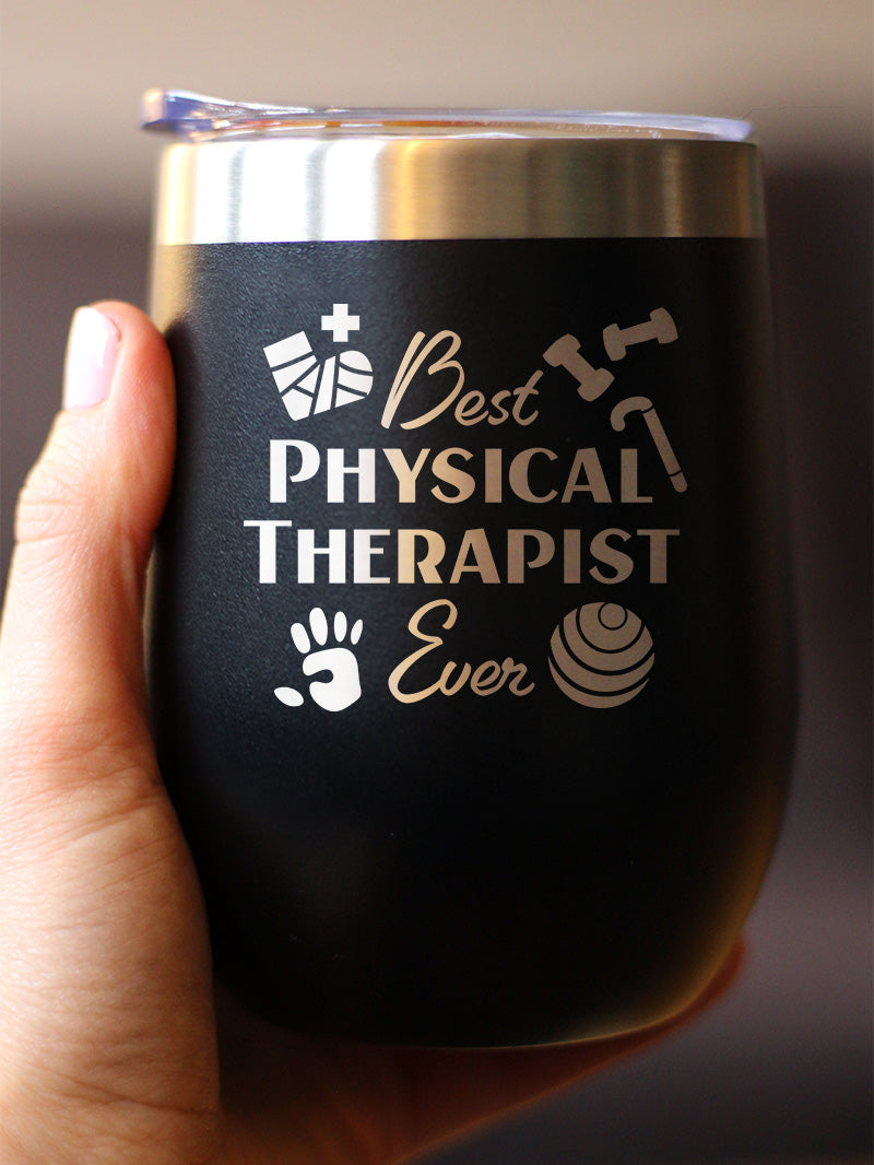 Best Physical Therapist - Wine Tumbler Cup with Sliding Lid - Stainless Steel Insulated Mug - Physical Therapy Gifts