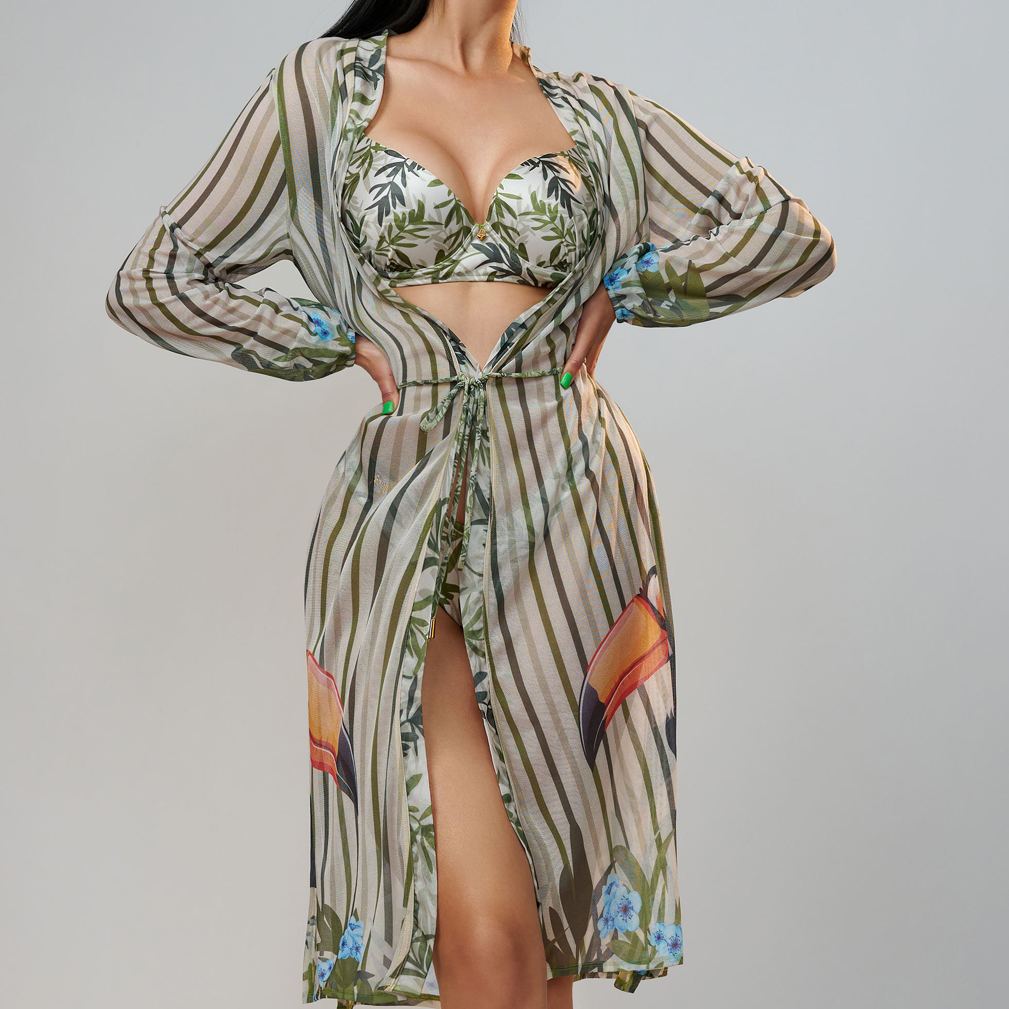 Bikini Cover Up Tropical Leaf ‐ Green / M