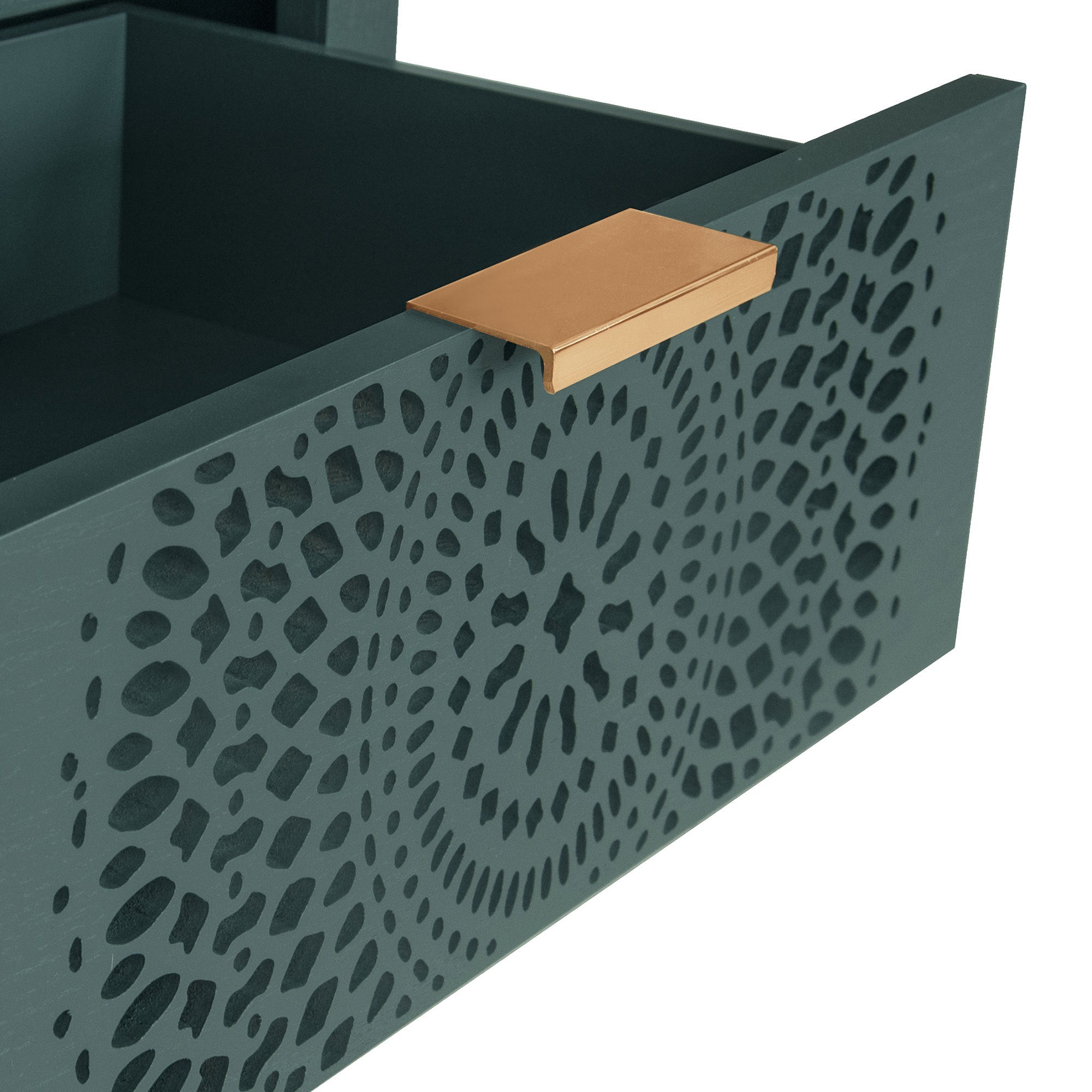 Blackish Green Hollow-Carved 3-Drawer Dresser with Metal Handles, MDF Storage Chest for Living Room or Bedroom ‐ Default