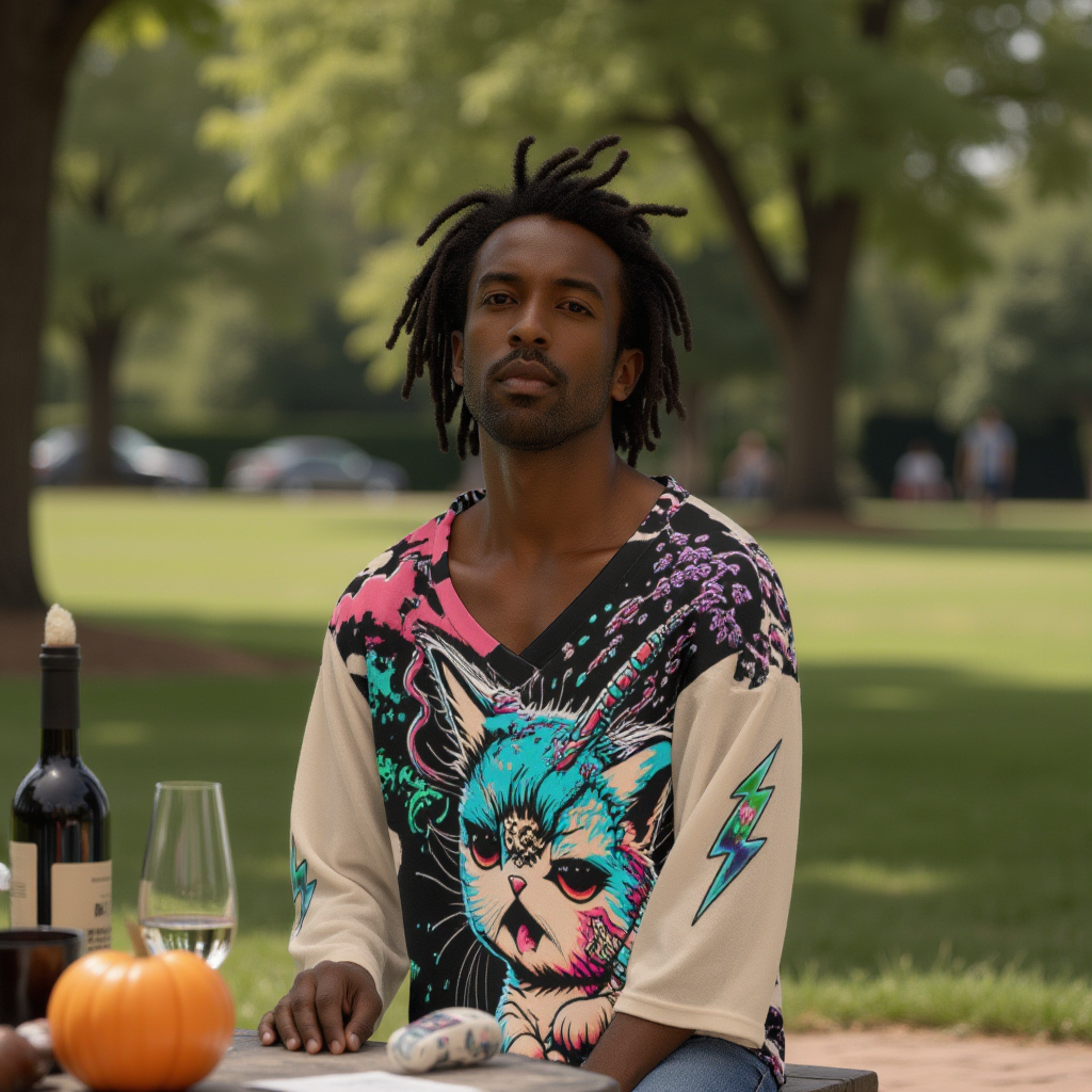 Blicken Kitten Men's V-neck Jersey ‐ 5XL / White