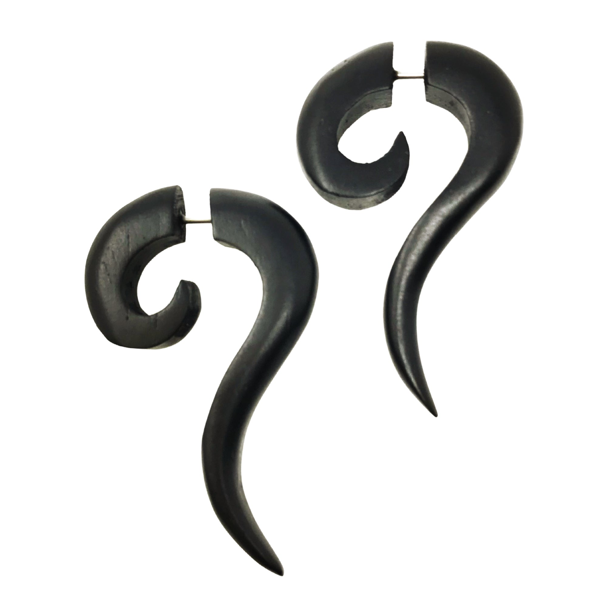 Show your wild side with these gothic natural wood Bohemian faux gauge earrings! Featuring intricate designs, they'll add a touch of punk-rock style to your outfit. And don't worry, there's no actual piercing involved!