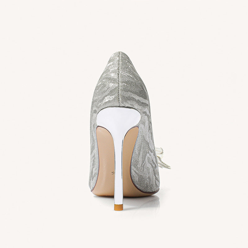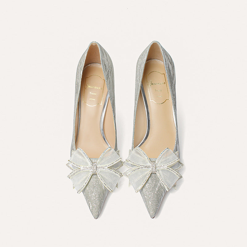 Bow Crystal Stiletto | ZAKAPOP ‐ Silver / 6cm / 8