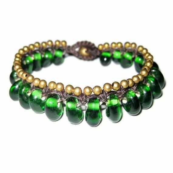 Bubble Glass Bead Adjustable Bracelet - Thailand ‐ Green