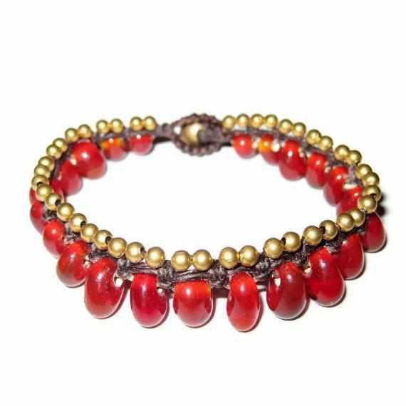 Bubble Glass Bead Adjustable Bracelet - Thailand ‐ Red