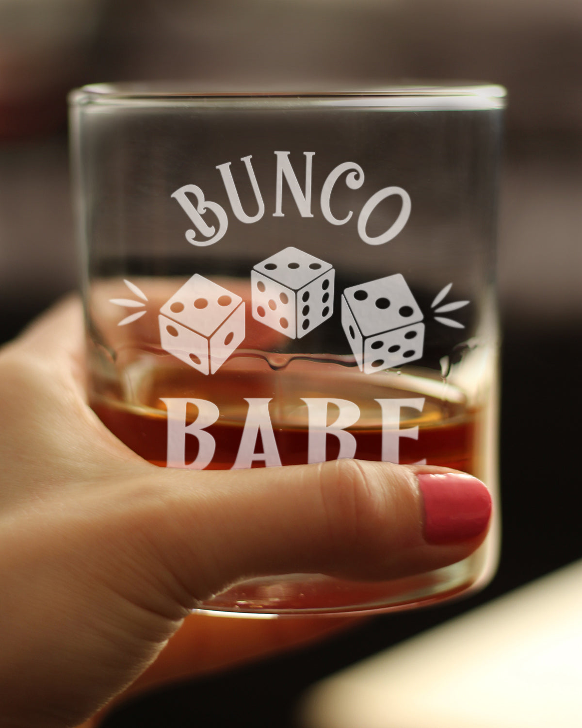 Bunco Babe Rocks Glass - Bunco Decor and Bunco Gifts for Women - 10.25 Oz Glasses