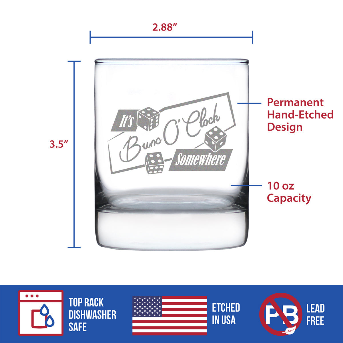 BuncO 'Clock Somewhere Rocks Glass - Bunco Decor and Bunco Gifts for Women - 10.25 Oz Glasses