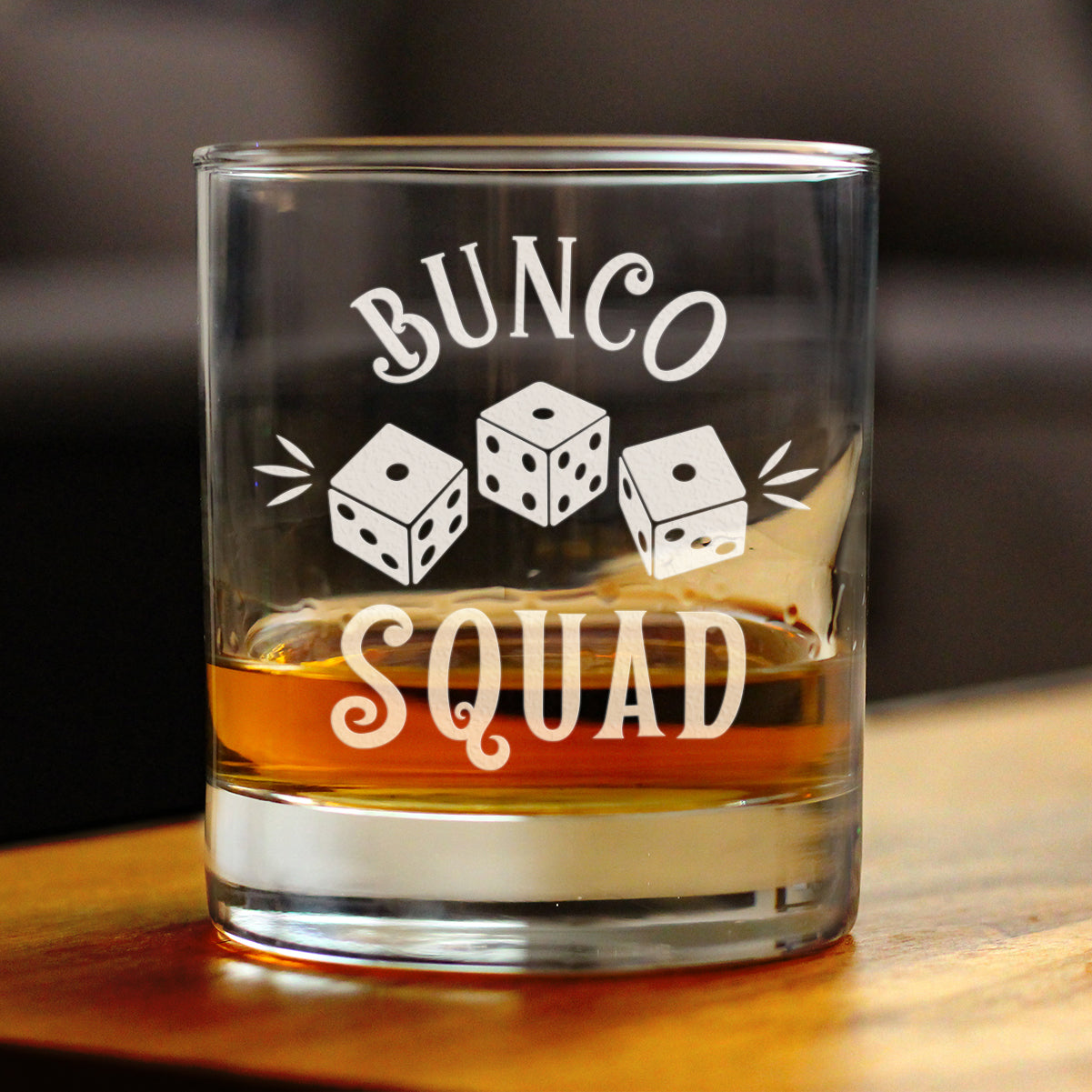 Bunco Squad Rocks Glass - Bunco Decor and Bunco Gifts for Women - 10.25 Oz Glasses