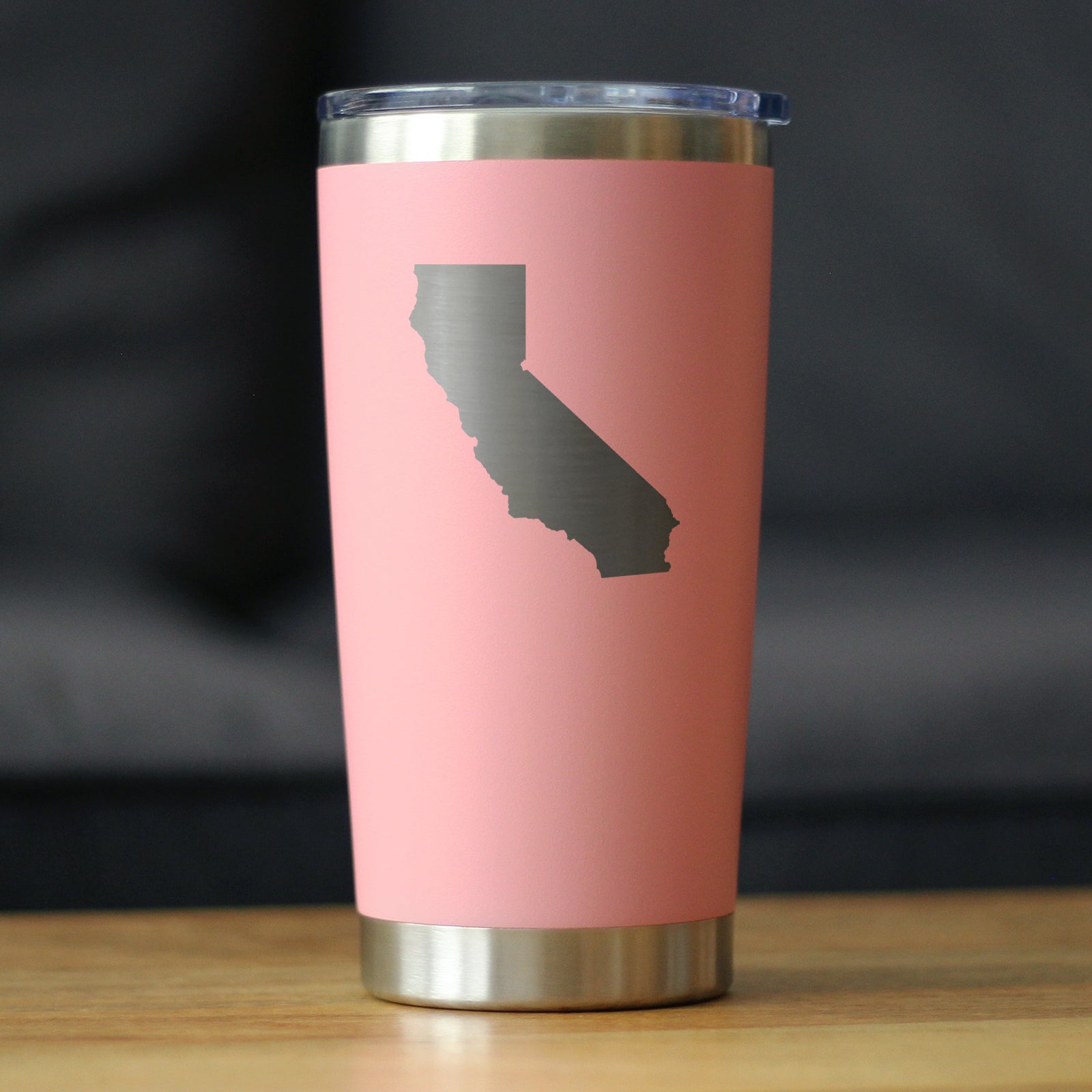 California State Outline - Insulated Coffee Tumbler Cup with Sliding Lid - Stainless Steel Travel Mug - California Gifts for Women and Men Californians ‐ Pink