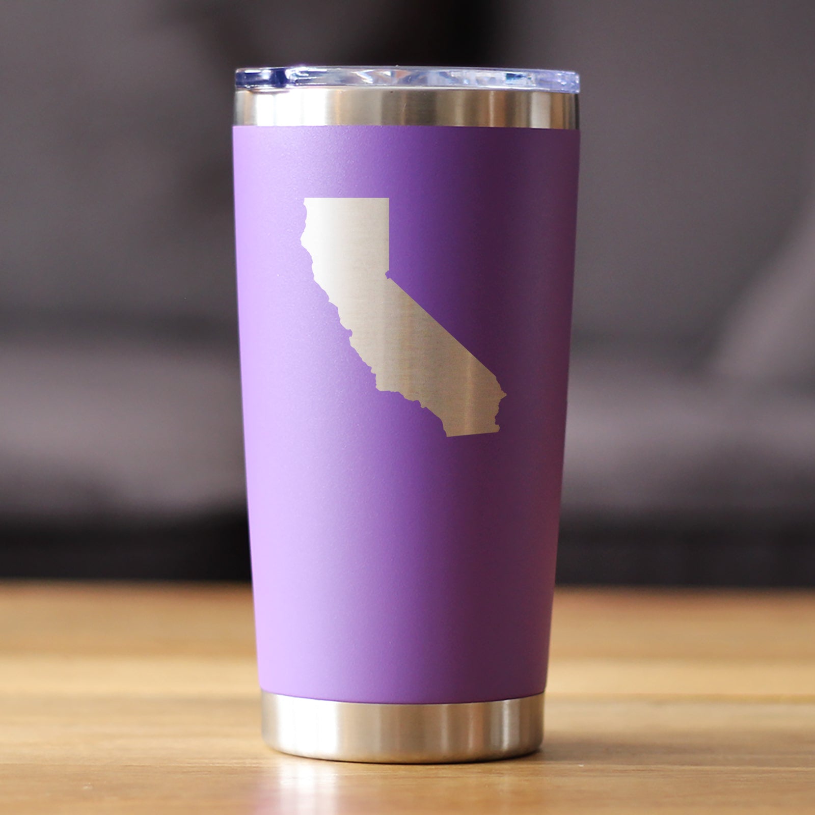 California State Outline - Insulated Coffee Tumbler Cup with Sliding Lid - Stainless Steel Travel Mug - California Gifts for Women and Men Californians ‐ Purple